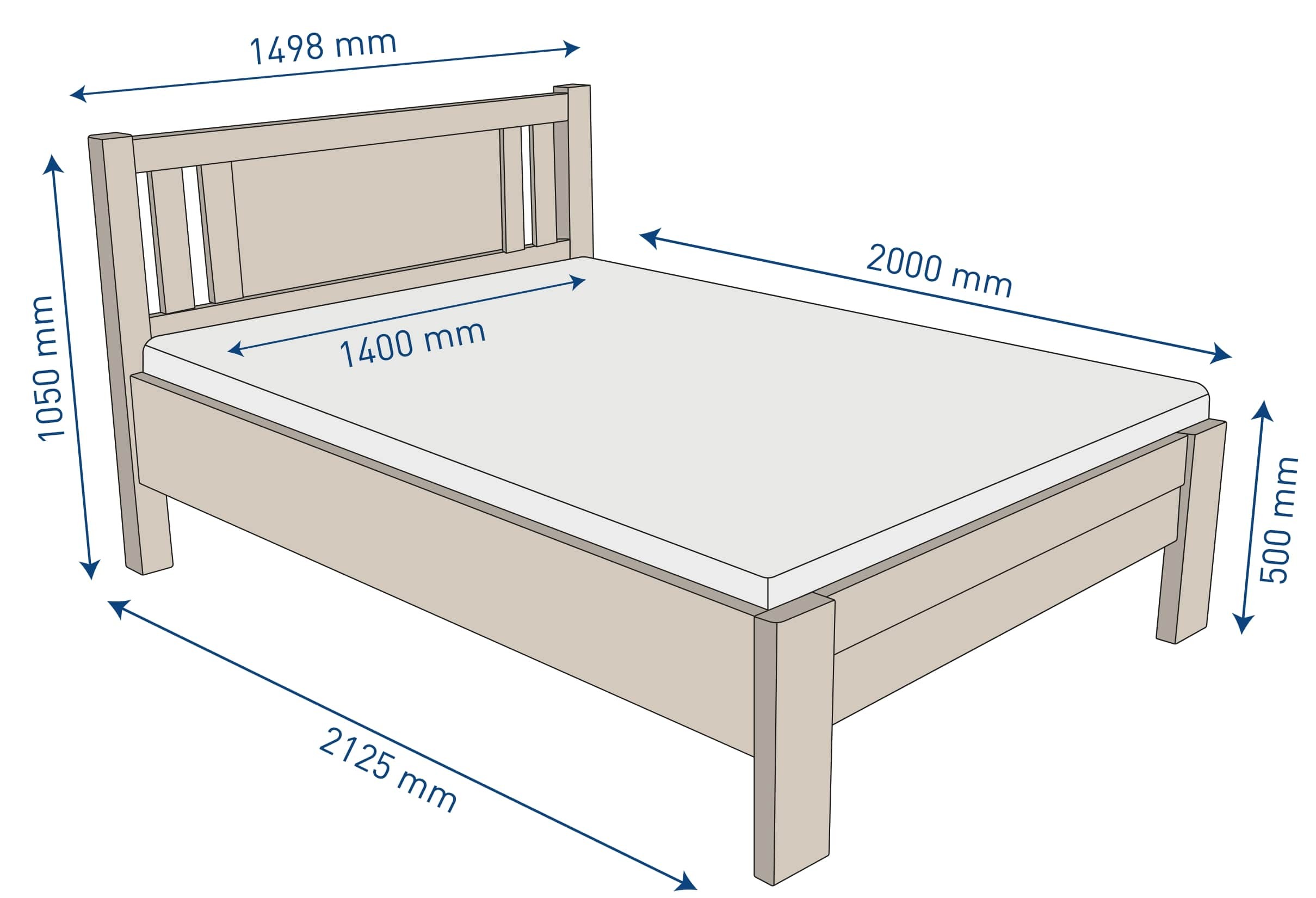 Celomasivní postel z přírodního dubu Sion H2, D1, 140x200 cm