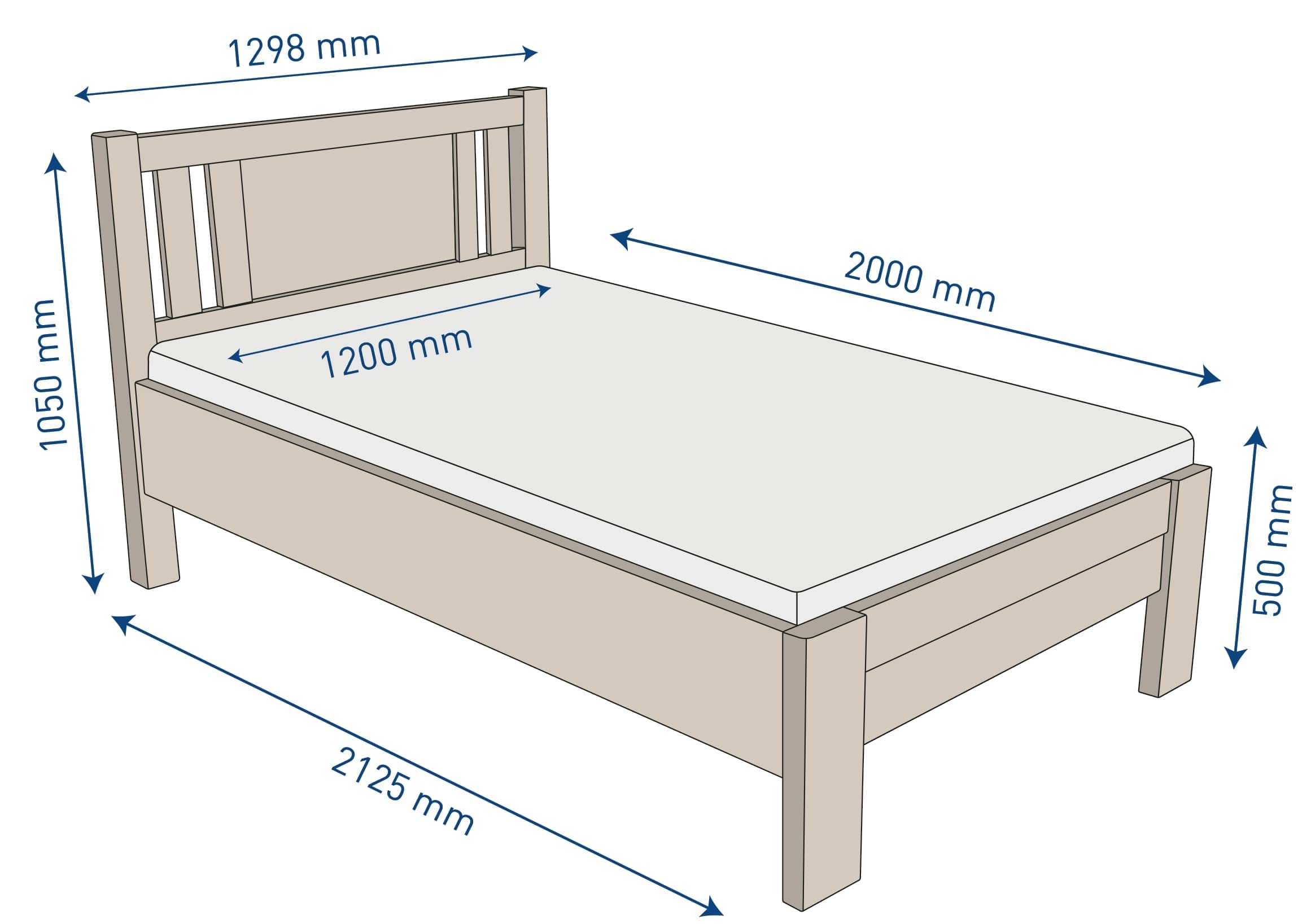 Masivní postel z dubového dřeva Sion K2, D1, 120x200 cm