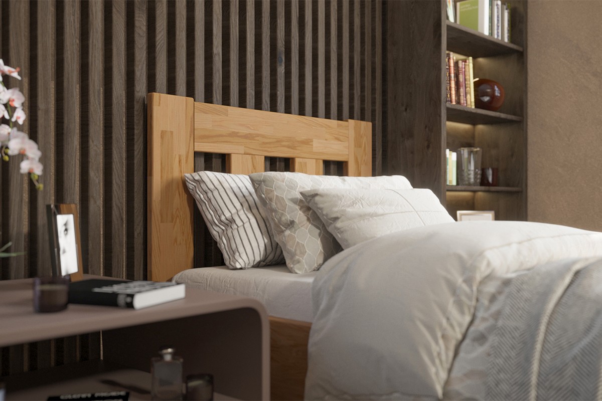 Celomasivní postel z přírodního dubu, Utena, provedení D5, 90x200 cm
