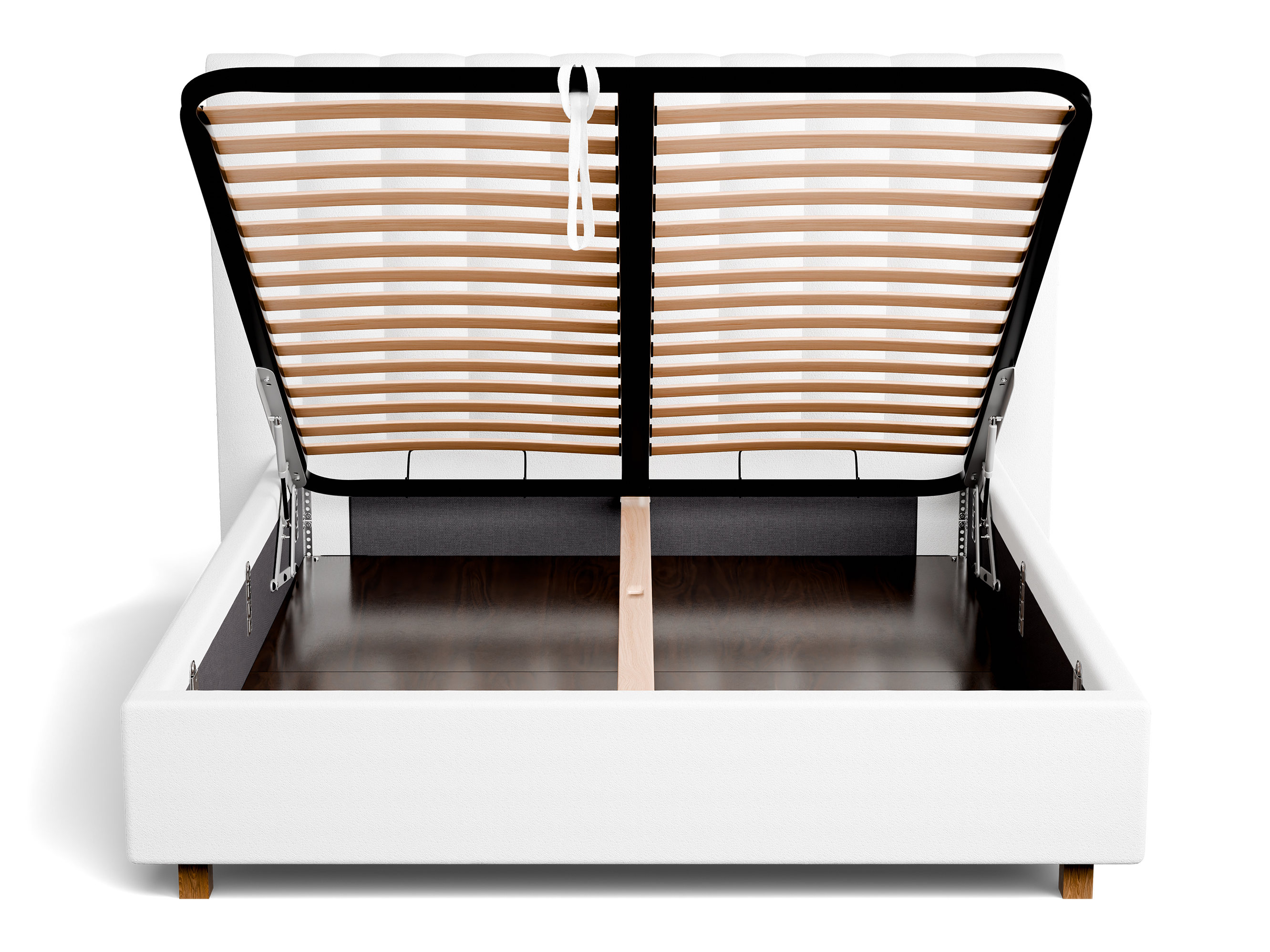 Rámová základna FRAME STORAGE obsahuje úložný prostor, do kterého lze ukrýt vše, co bude potřeba. Desky jsou vyrobeny z kvalitní MDF desky, která je odolná a pro zvýšení nosnosti a stability jsou umístěny na kovové výstuze základny. Tento typ základny neobsahuje postelový rošt a je tak vhodný například pro zákazníky, kteří preferují polohovací rošty.