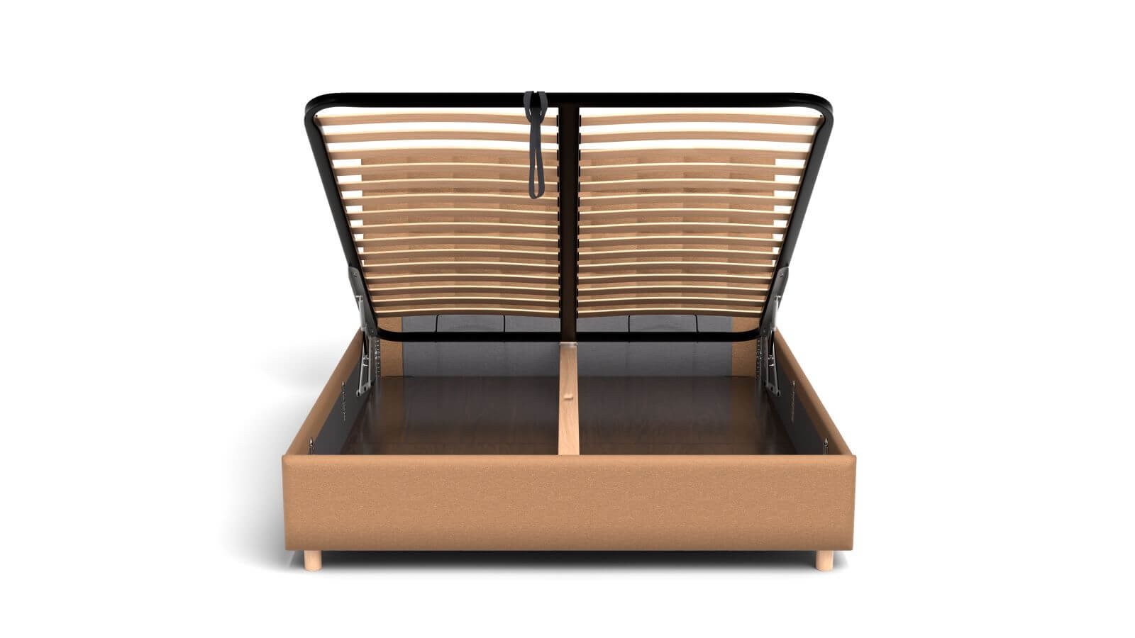 Rámová základna FRAME STORAGE obsahuje úložný prostor, do kterého lze ukrýt vše, co bude potřeba. Desky jsou vyrobeny z kvalitní MDF desky, která je odolná a pro zvýšení nosnosti a stability jsou umístěny na kovové výstuze základny. Tento typ základny neobsahuje postelový rošt a je tak vhodný například pro zákazníky, kteří preferují polohovací rošty.