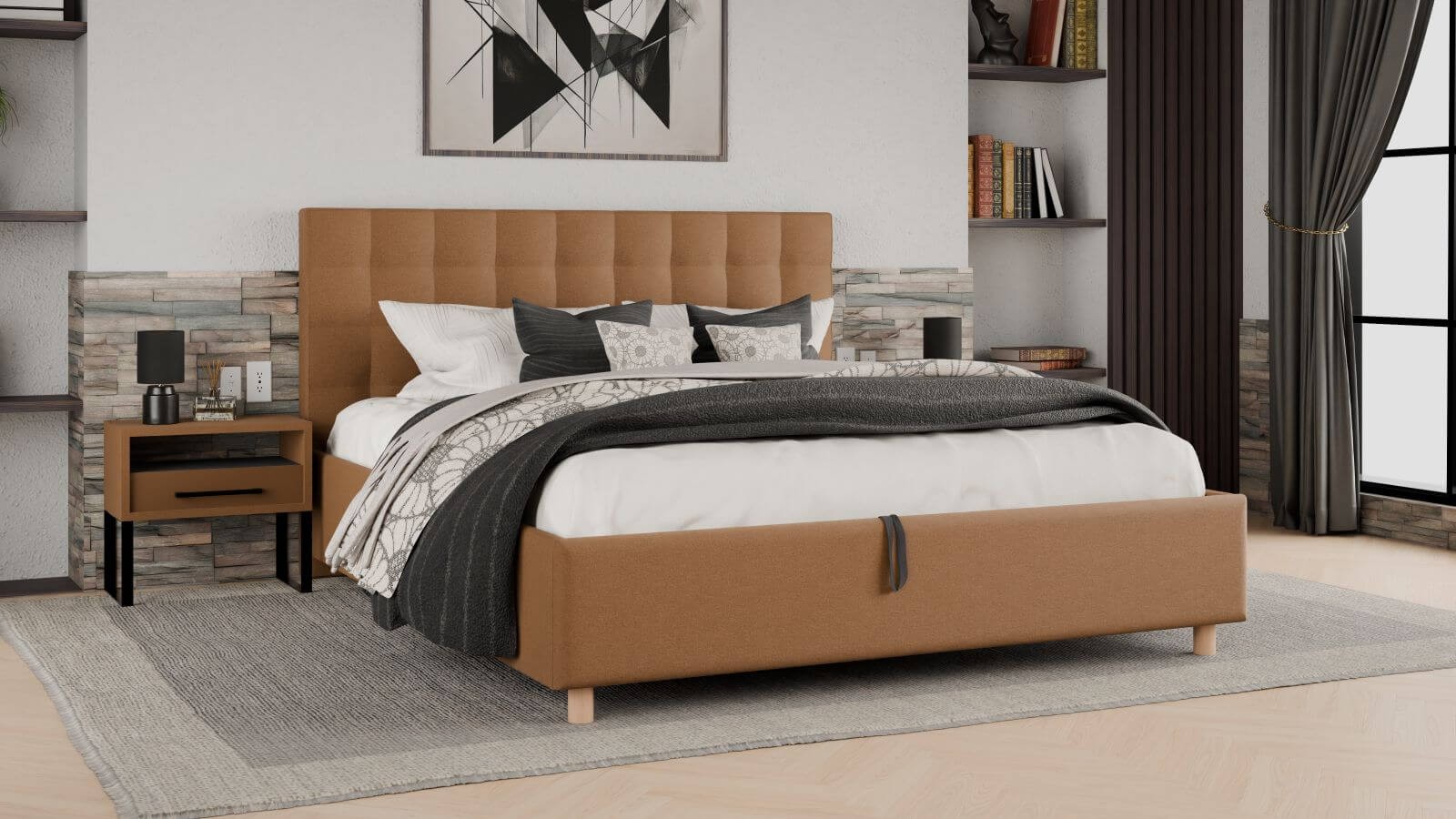 Čalouněná postel Garland Frame Lift, Wooden Oak, Royal Suede Caribou, 160x200 cm