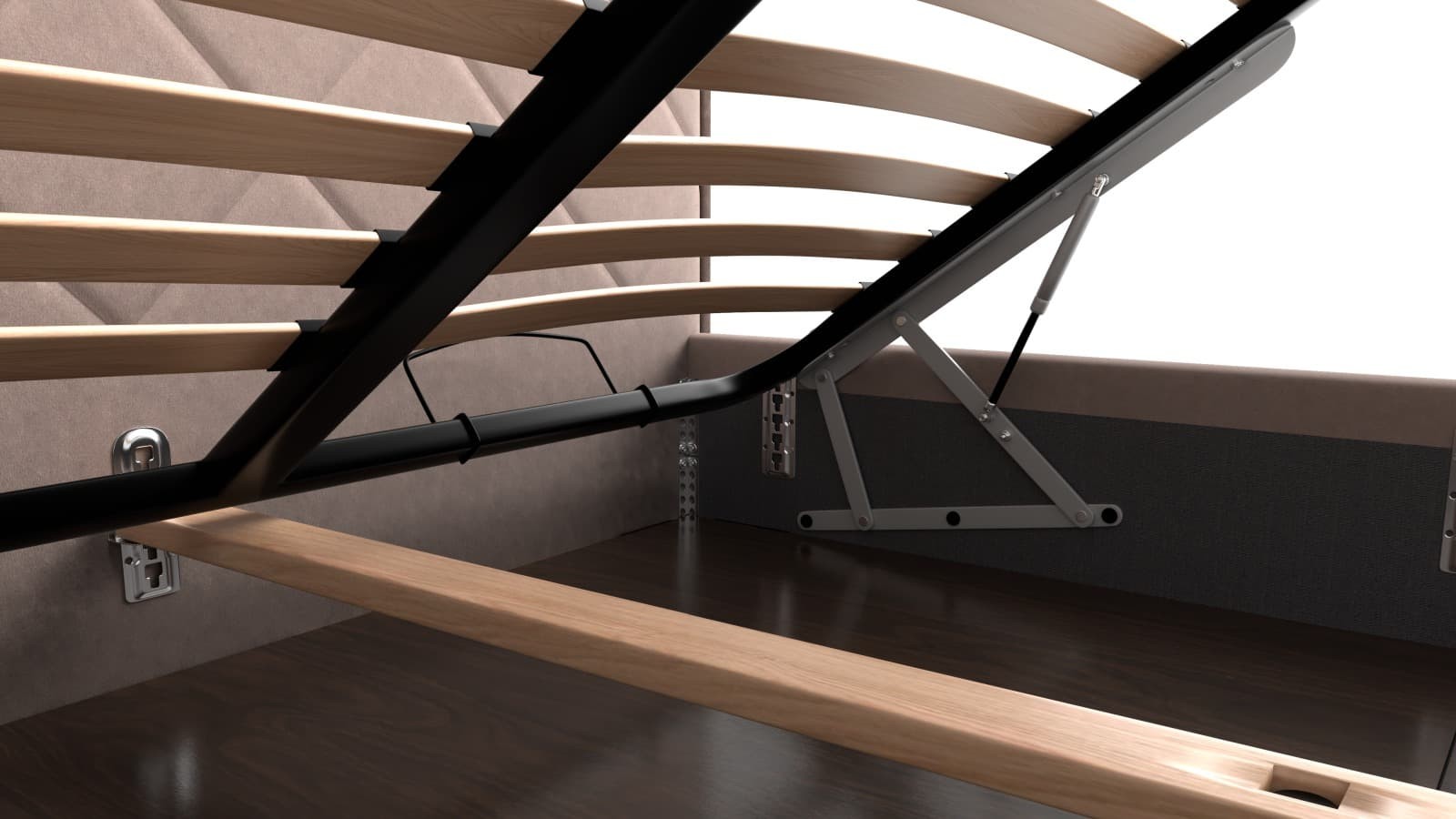 Rámová základna FRAME STORAGE obsahuje úložný prostor, do kterého lze ukrýt vše, co bude potřeba. Desky jsou vyrobeny z kvalitní MDF desky, která je odolná a pro zvýšení nosnosti a stability jsou umístěny na kovové výstuze základny. Tento typ základny neobsahuje postelový rošt a je tak vhodný například pro zákazníky, kteří preferují polohovací rošty.