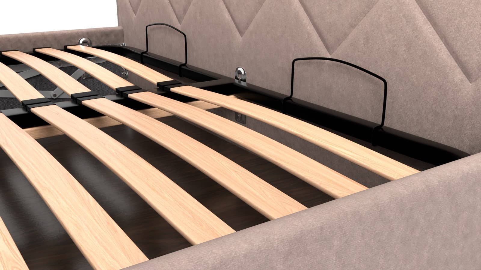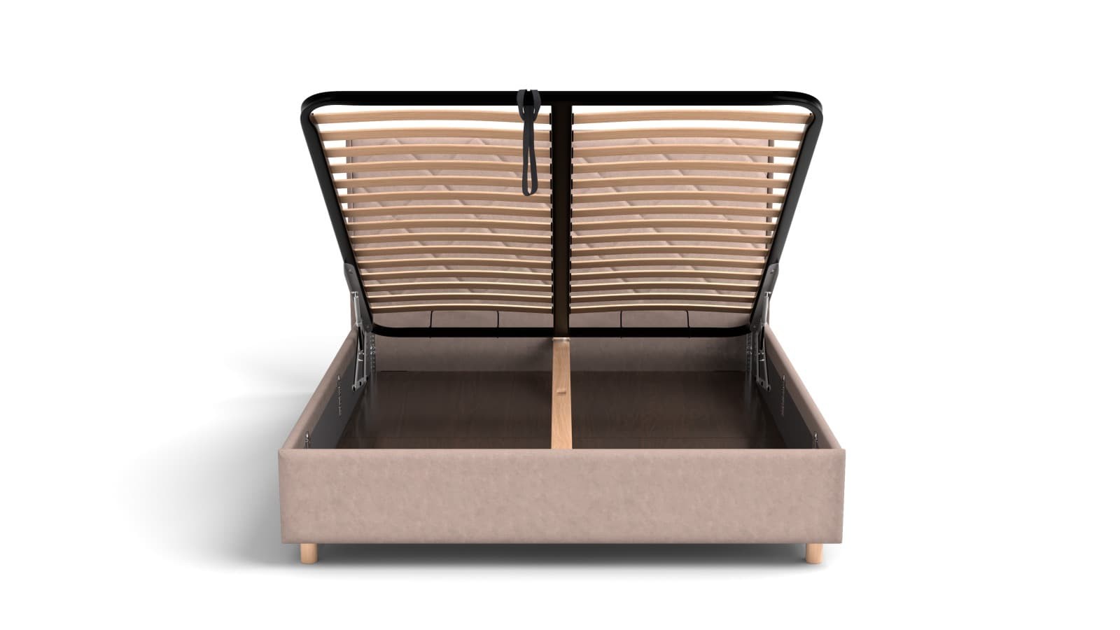 Rámová základna FRAME STORAGE obsahuje úložný prostor, do kterého lze ukrýt vše, co bude potřeba. Desky jsou vyrobeny z kvalitní MDF desky, která je odolná a pro zvýšení nosnosti a stability jsou umístěny na kovové výstuze základny. Tento typ základny neobsahuje postelový rošt a je tak vhodný například pro zákazníky, kteří preferují polohovací rošty.