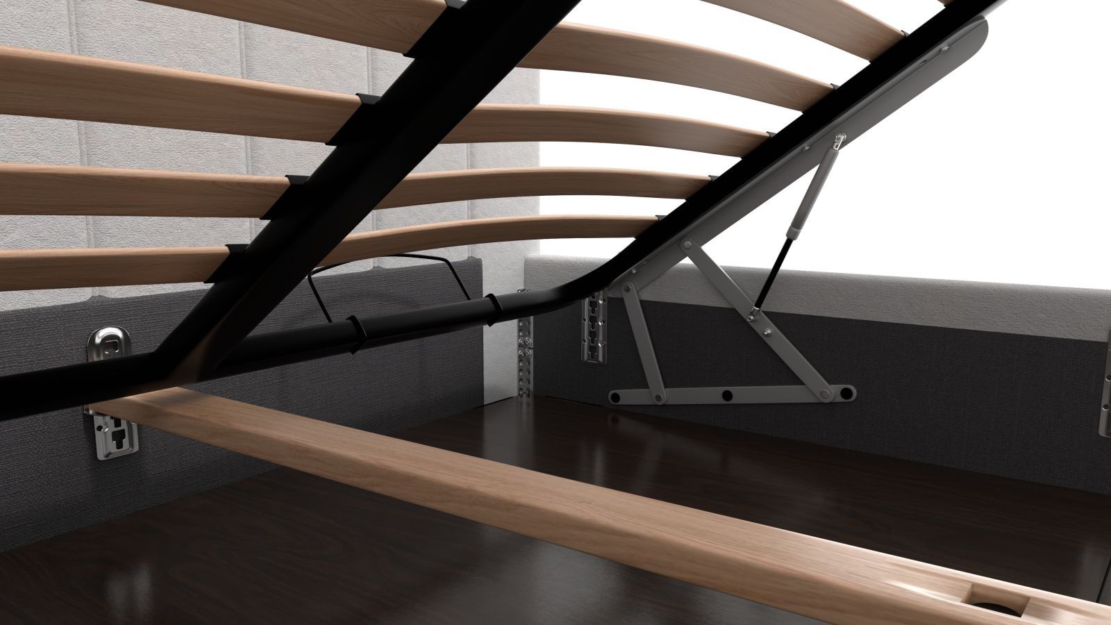 Základna FRAME LIFT je komplexním řešením pro vaši ložnici, součástí rámu je úložný prostor a postelový rošt typu LIFT, který umožní přístup právě do úložných prostor. Desky ÚP jsou uloženy na kovové podpěře, která zajistí stabilitu a odolnost postele. Rošt je k základně upevněn plynovými písty, které při manipulaci nevydávají žádné nepříjemné zvuky a jsou velmi komfortní při používání.