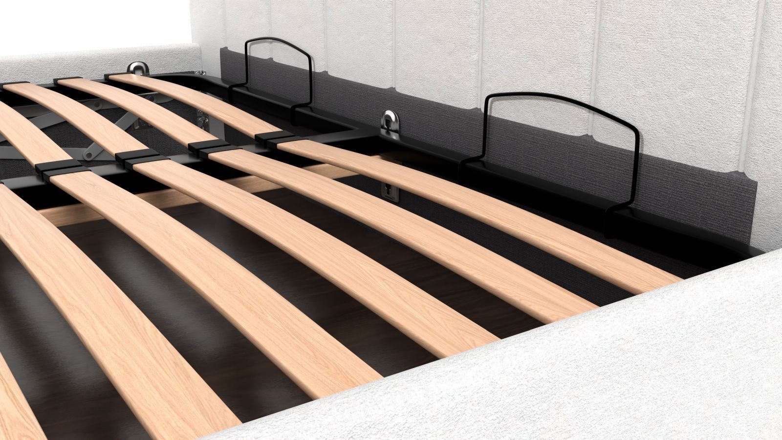 Rámová základna FRAME STORAGE obsahuje úložný prostor, do kterého lze ukrýt vše, co bude potřeba. Desky jsou vyrobeny z kvalitní MDF desky, která je odolná a pro zvýšení nosnosti a stability jsou umístěny na kovové výstuze základny. Tento typ základny neobsahuje postelový rošt a je tak vhodný například pro zákazníky, kteří preferují polohovací rošty.