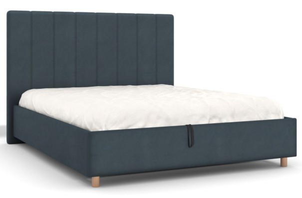 Čalouněná postel Pasadena Frame Storage, Wooden Oak, Paris Dark Blue, 180x200 cm