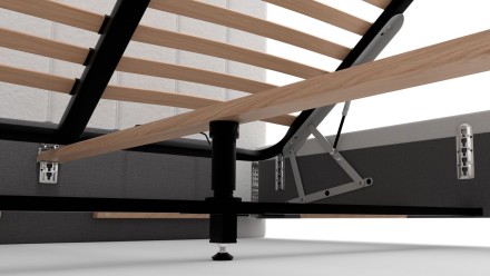 Základna FRAME LIFT je komplexním řešením pro vaši ložnici, součástí rámu je úložný prostor a postelový rošt typu LIFT, který umožní přístup právě do úložných prostor. Desky ÚP jsou uloženy na kovové podpěře, která zajistí stabilitu a odolnost postele. Rošt je k základně upevněn plynovými písty, které při manipulaci nevydávají žádné nepříjemné zvuky a jsou velmi komfortní při používání.