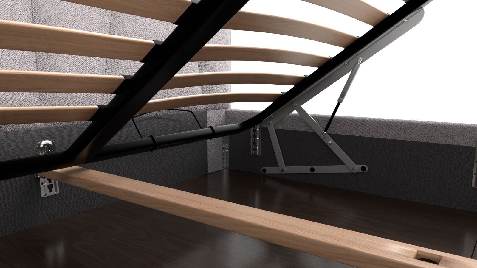 Základna FRAME LIFT je komplexním řešením pro vaši ložnici, součástí rámu je úložný prostor a postelový rošt typu LIFT, který umožní přístup právě do úložných prostor. Desky ÚP jsou uloženy na kovové podpěře, která zajistí stabilitu a odolnost postele. Rošt je k základně upevněn plynovými písty, které při manipulaci nevydávají žádné nepříjemné zvuky a jsou velmi komfortní při používání.