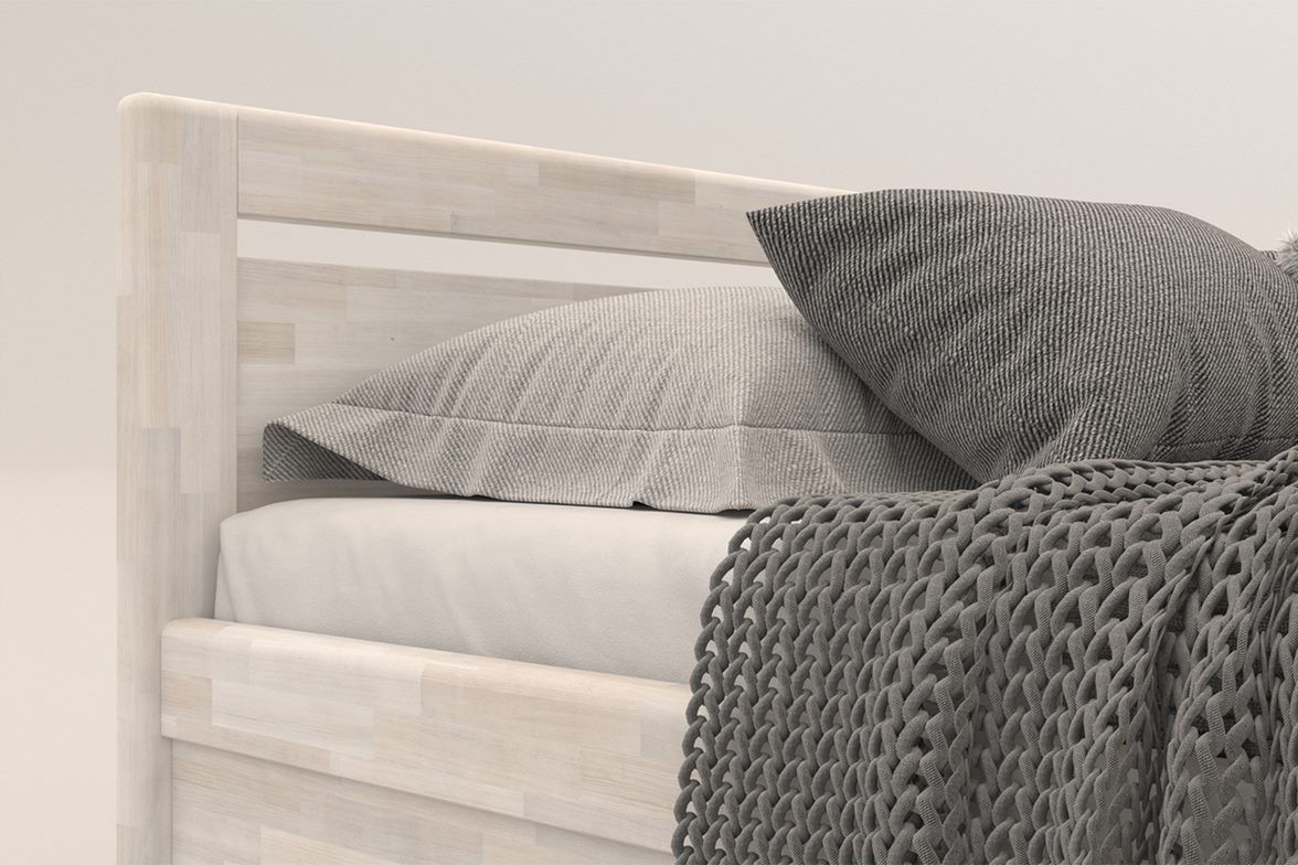 Zachovává vzhled tradiční české masivní postele blížící se modernímu skandinávskému stylu