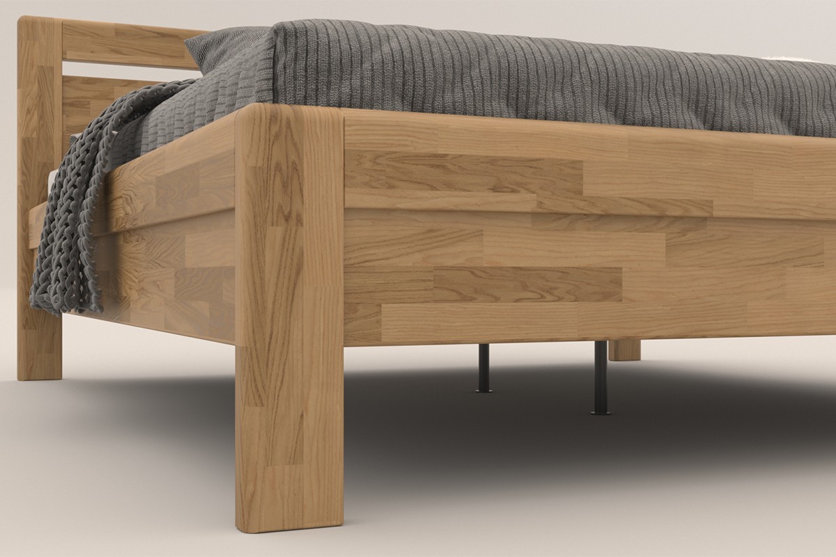 Zachovává vzhled tradiční české masivní postele blížící se modernímu skandinávskému stylu