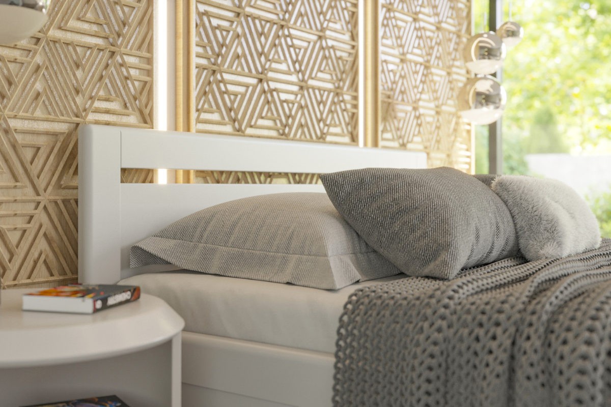 Zachovává vzhled tradiční české masivní postele blížící se modernímu skandinávskému stylu