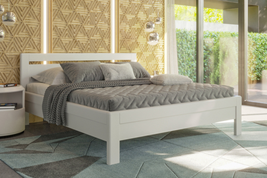 Zachovává vzhled tradiční české masivní postele blížící se modernímu skandinávskému stylu