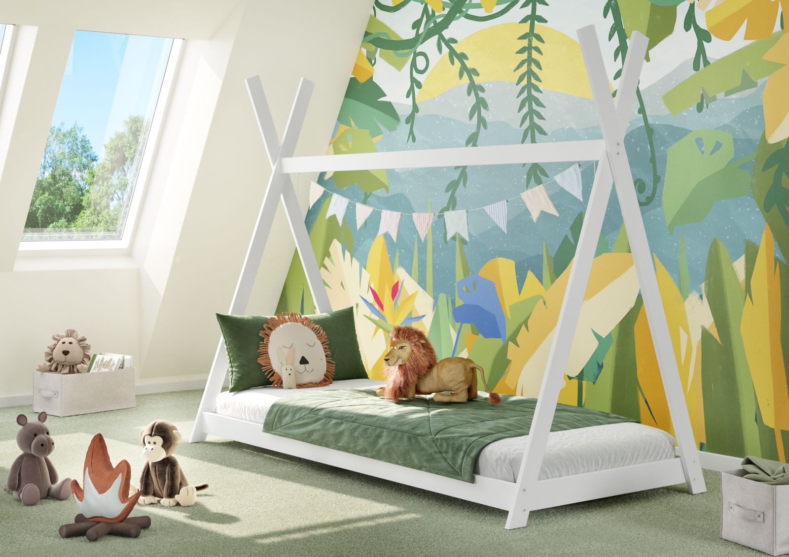 Postel Tipi promění každý dětský pokoj v kouzelné místo plné fantazie. Malým snílkům poskytne útulné a pohodlné místo na spaní a vnese do místnosti hravou atmosféru. Díky masivnímu dřevu je konstrukce postele stabilní, pevná a hlavně bezpečná – přesně tak, jak to má u dětského nábytku být. Tipi postel je víc než jen nábytek – je to místo, kde dětská představivost dostává prostor snít ve velkém.