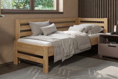 Jakmile vaše dítě měří okolo 100 cm, je dobré mu koupit dětskou postel 90x200 cm nebo větší. Nejčastěji narazíte na dětské postele z masivu nebo lamina. Lamino je dřevotřísková deska polepená laminovacím papírem. Ten často mívá dřevěný vzor, aby imitoval masivní dřevo. Z tohoto důvodu postel z masivu s kvalitní povrchovou úpravou vydrží déle než postel z lamina. Lamino je však dobrou volbou, hledáte-li levnou postel.Dlouhou životnost postelí z masivu zajišťují kromě materiálu i lepší spoje. V mnoha případech naleznete spoje kov na kov, které zaručují, že se postel nerozvrže a budete ji mít roky. Spoje u dětské postele jsou důležité. Měly by vydržet skákání dítěte na posteli nebo třeba stěhování.