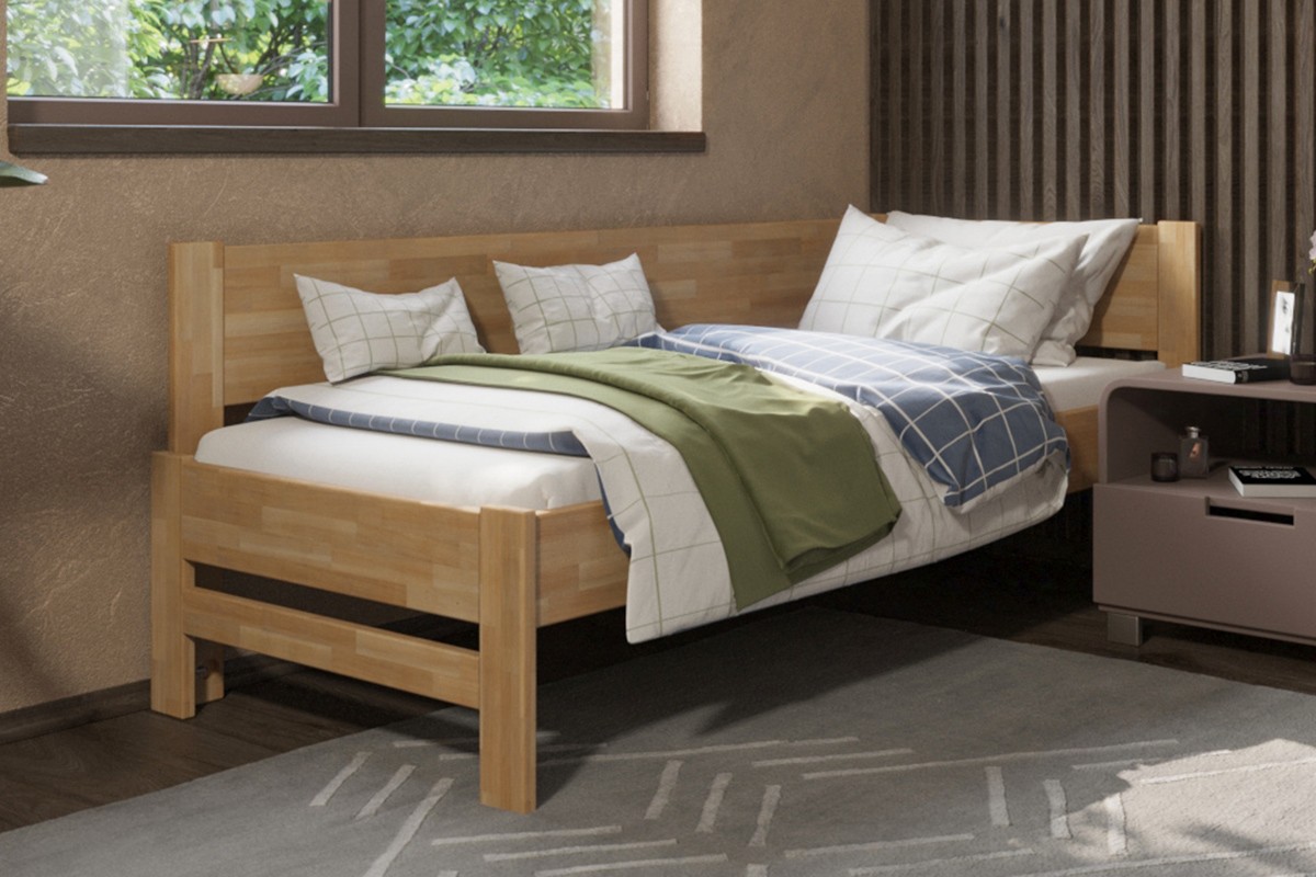 Jednolůžková rohová dřevěná postel Amelia, levý roh, provedení BK1, 120x200 cm