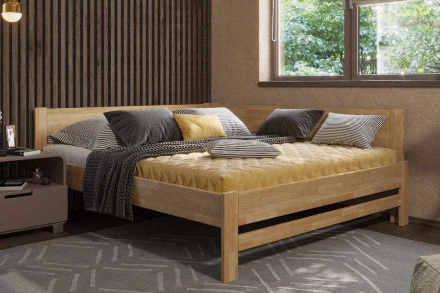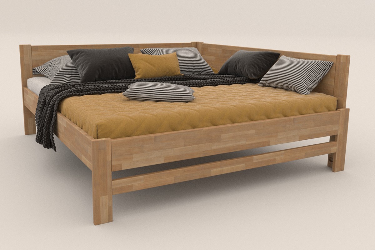 Rohová dřevěná postel Amelia, pravý roh, provedení BK1, 140x200 cm