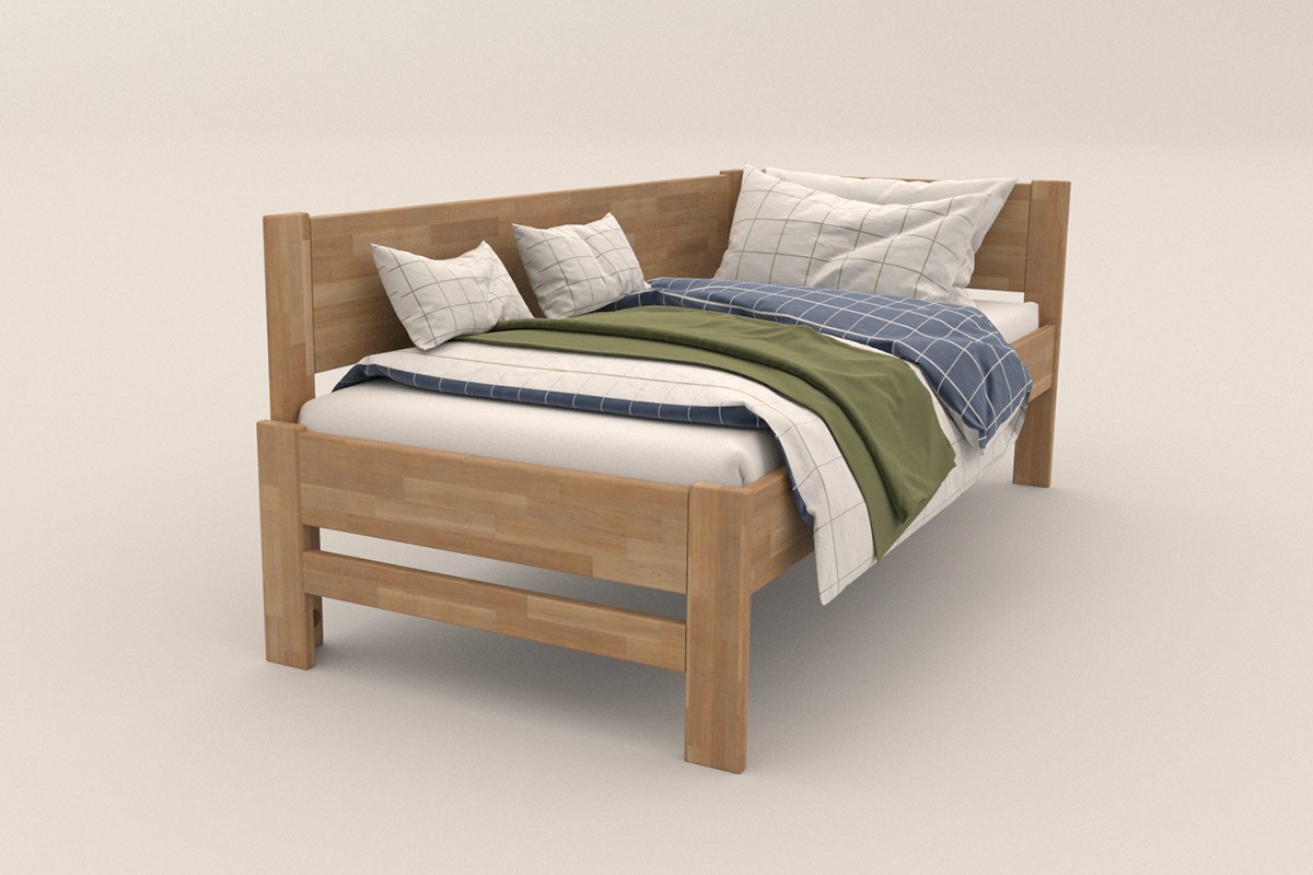 Jednolůžková rohová dřevěná postel Amelia, levý roh, provedení BK1, 90x200 cm