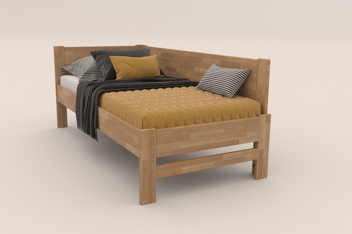 Jednolůžková rohová dřevěná postel Amelia, pravý roh, provedení BK1, 90x200 cm