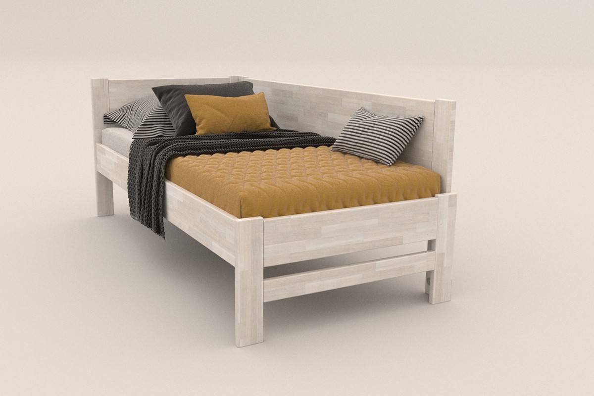 Jednolůžková rohová dřevěná postel Amelia, pravý roh, provedení BO102 bílá, 120x200 cm