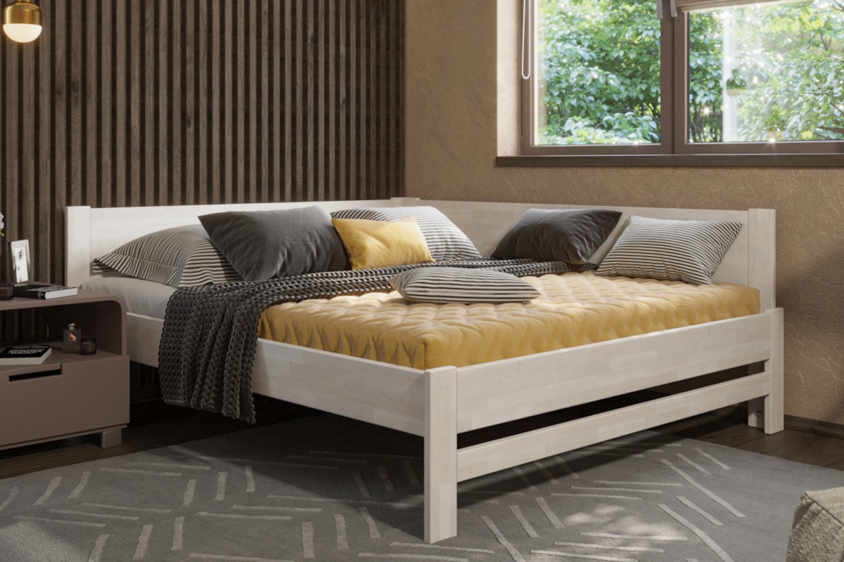 Rohová dřevěná postel Amelia, pravý roh, provedení BO102 bílá, 160x200 cm