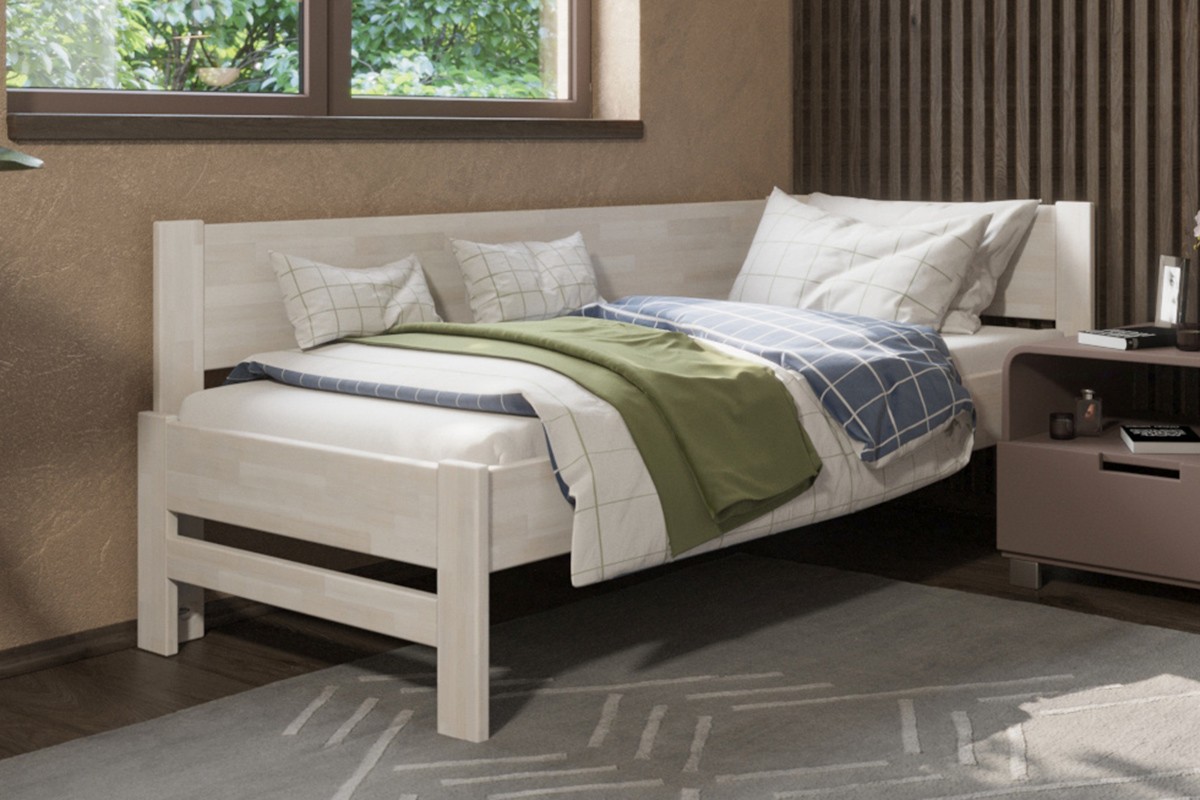 Jednolůžková rohová dřevěná postel Amelia, levý roh, provedení BO102 bílá, 90x200 cm