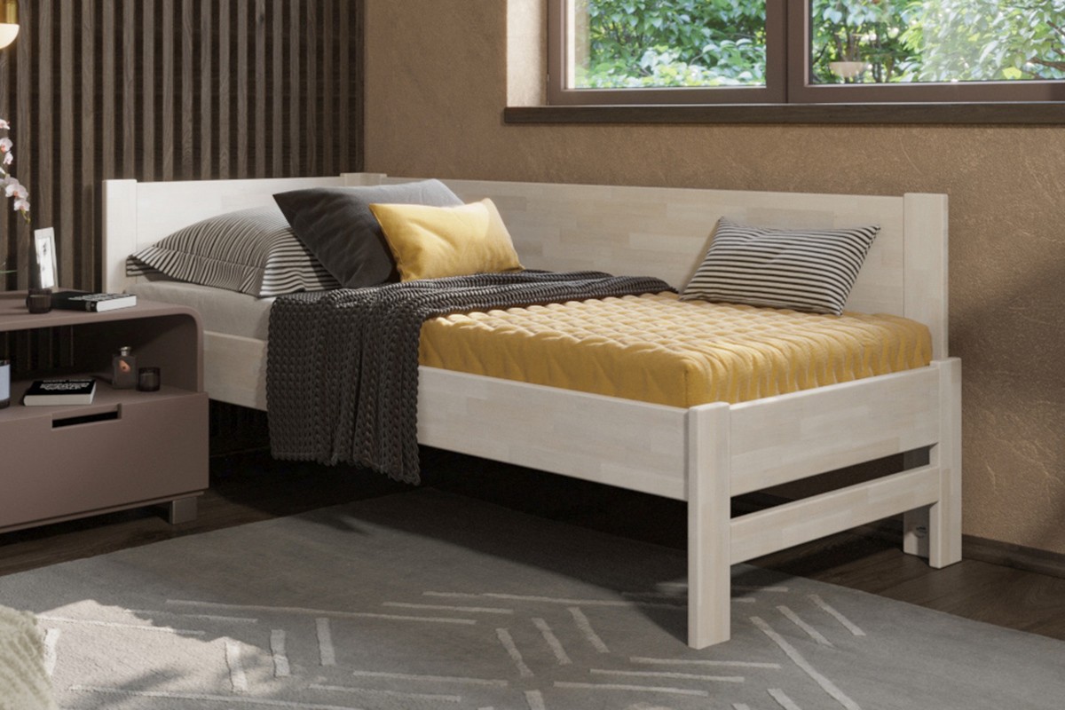Jednolůžková rohová dřevěná postel Amelia, pravý roh, provedení BO102 bílá, 90x200 cm