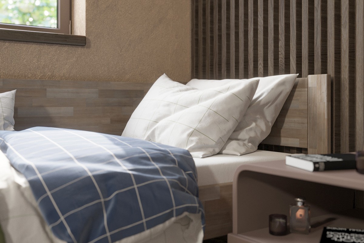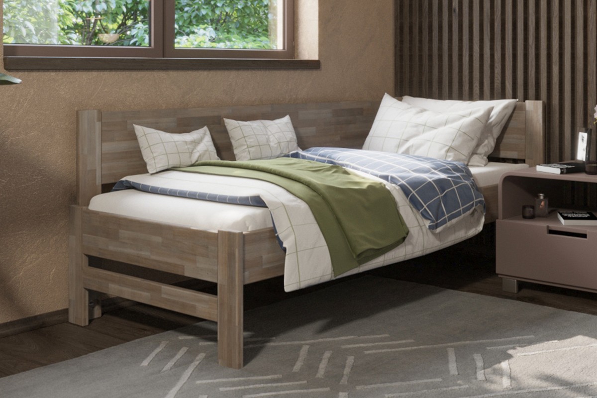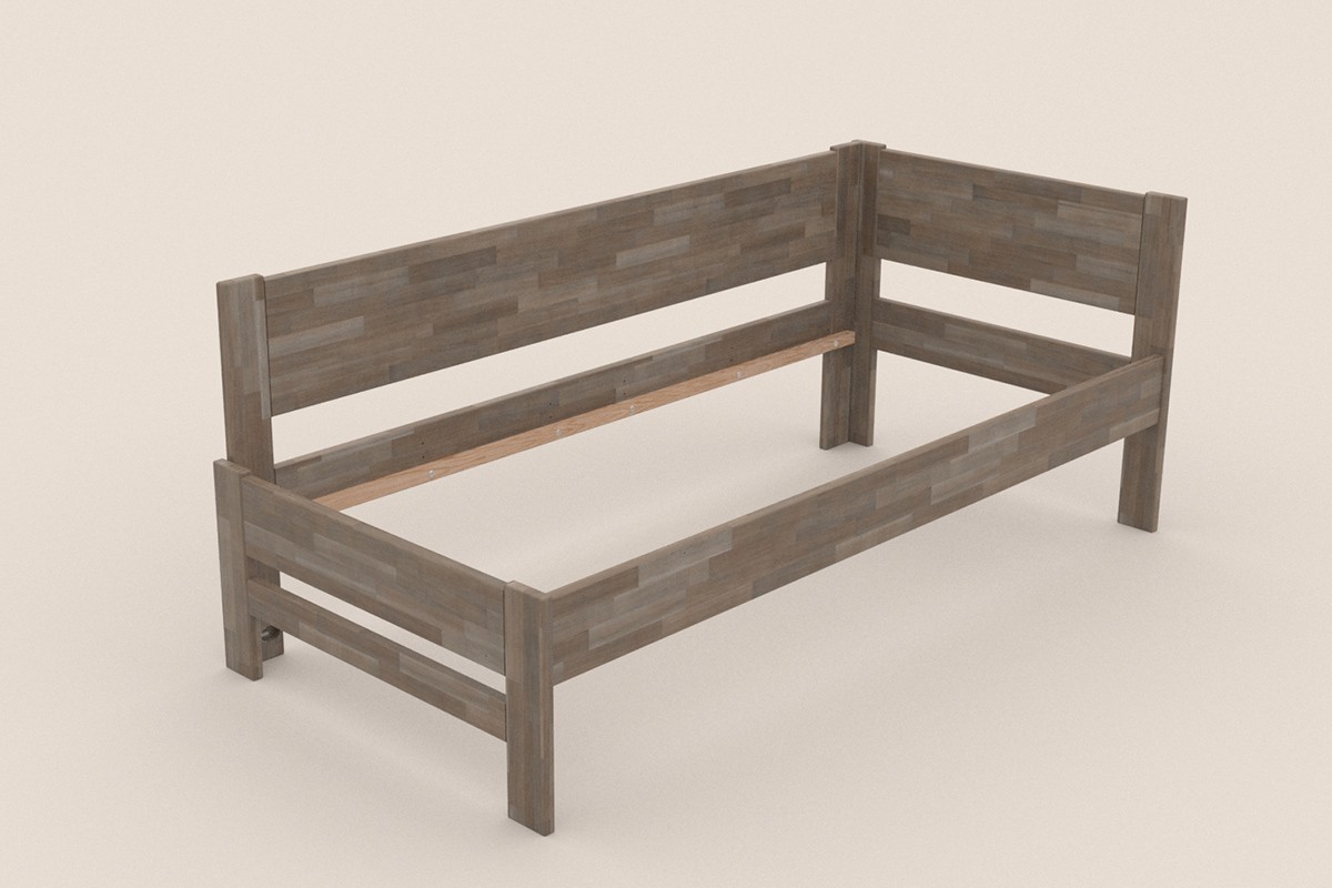 Jednolůžková rohová dřevěná postel Amelia, levý roh, provedení BO105 šedý granit, 120x200 cm