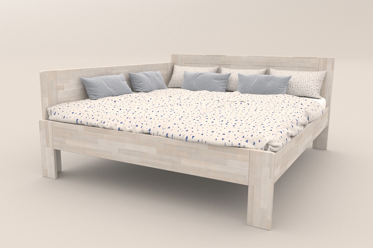 Rohová dřevěná postel Amien, levý roh, provedení BO102 bílá, 180x200 cm
