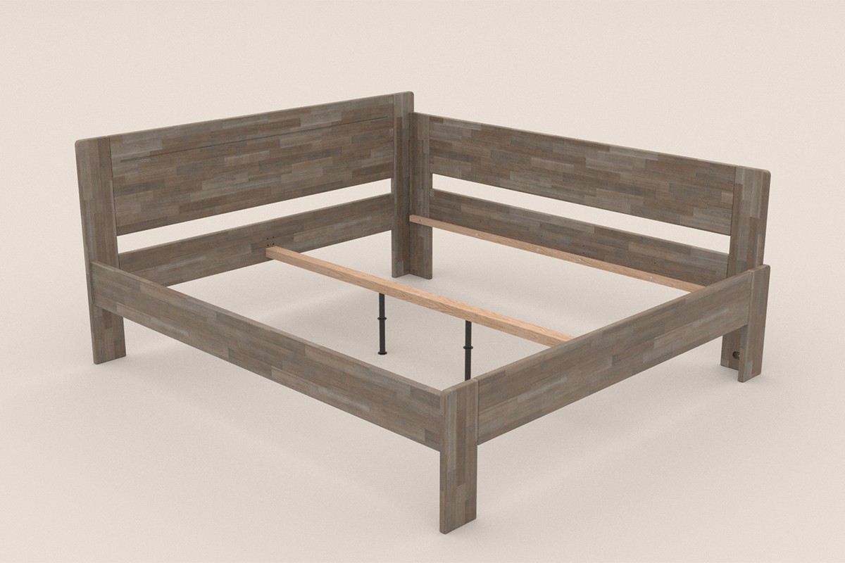 Rohová dřevěná postel Amien, pravý roh, provedení BO105 šedý granit, 90x200 cm