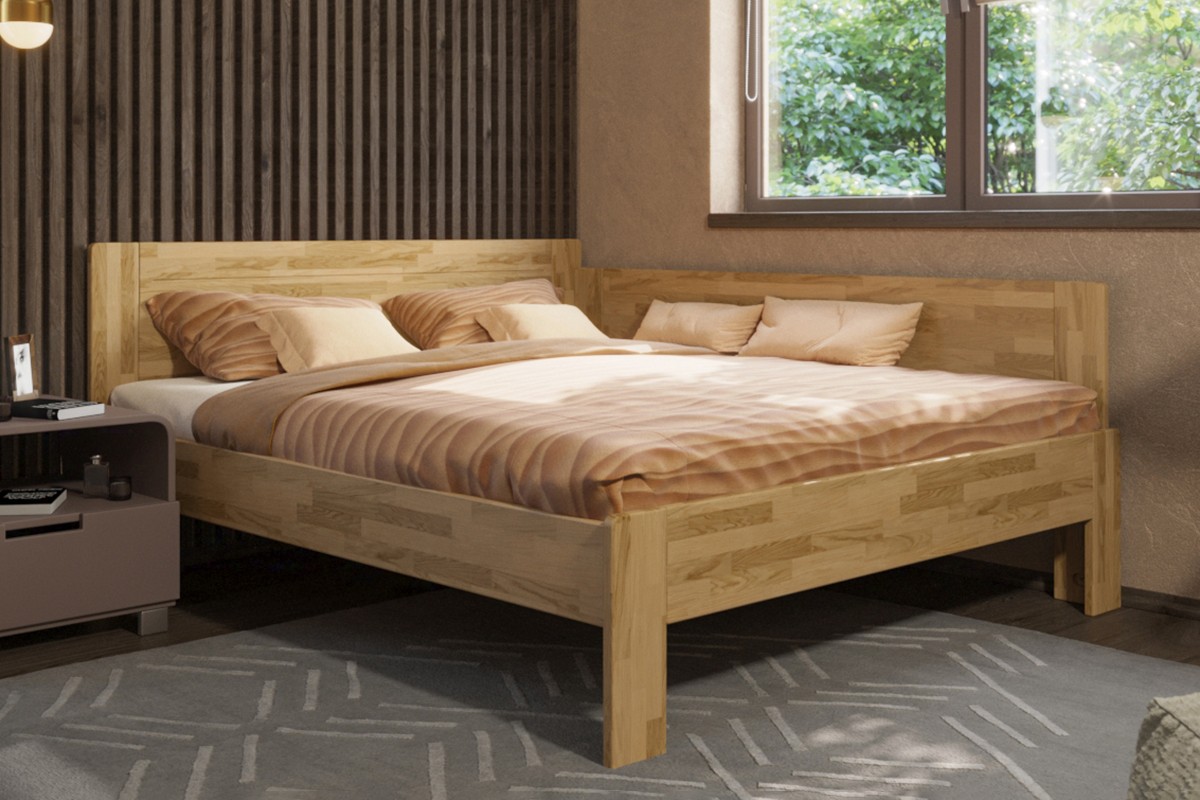 Rohová dřevěná postel, Amien pravý roh, provedení D1, dub, 160x200 cm