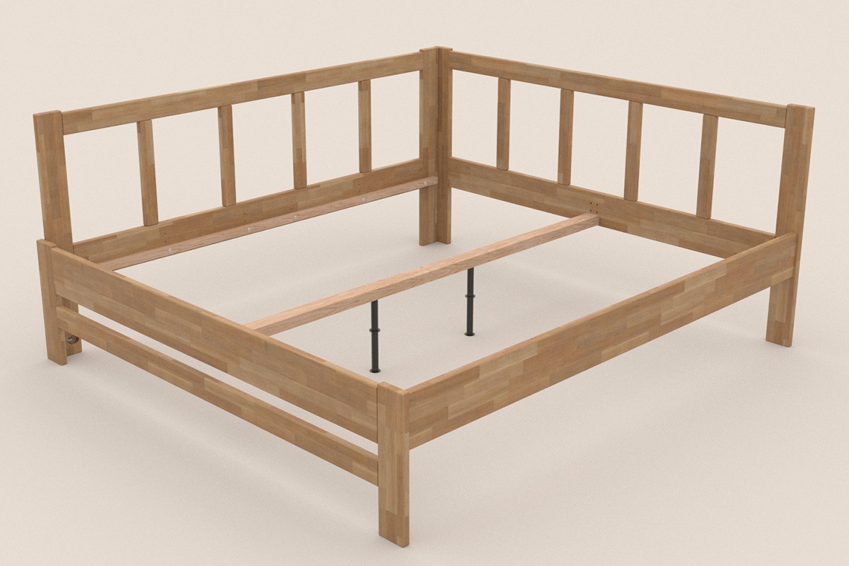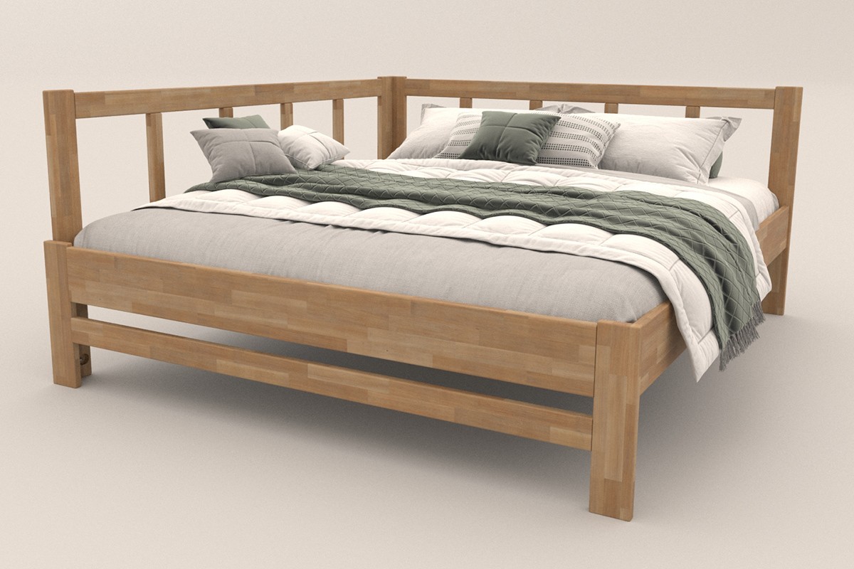 Rohová dřevěná postel Bety, levý roh, provedení BK1, 180x200 cm