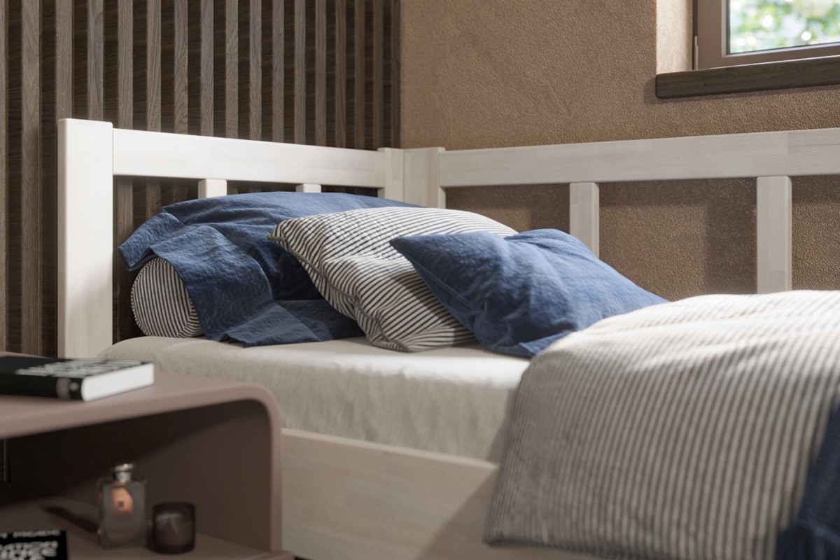 Jednolůžková rohová dřevěná postel Bety, pravý roh, provedení BO102 bílá, 120x200 cm