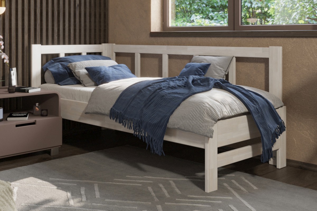 Jednolůžková rohová dřevěná postel Bety, pravý roh, provedení BO102 bílá, 90x200 cm