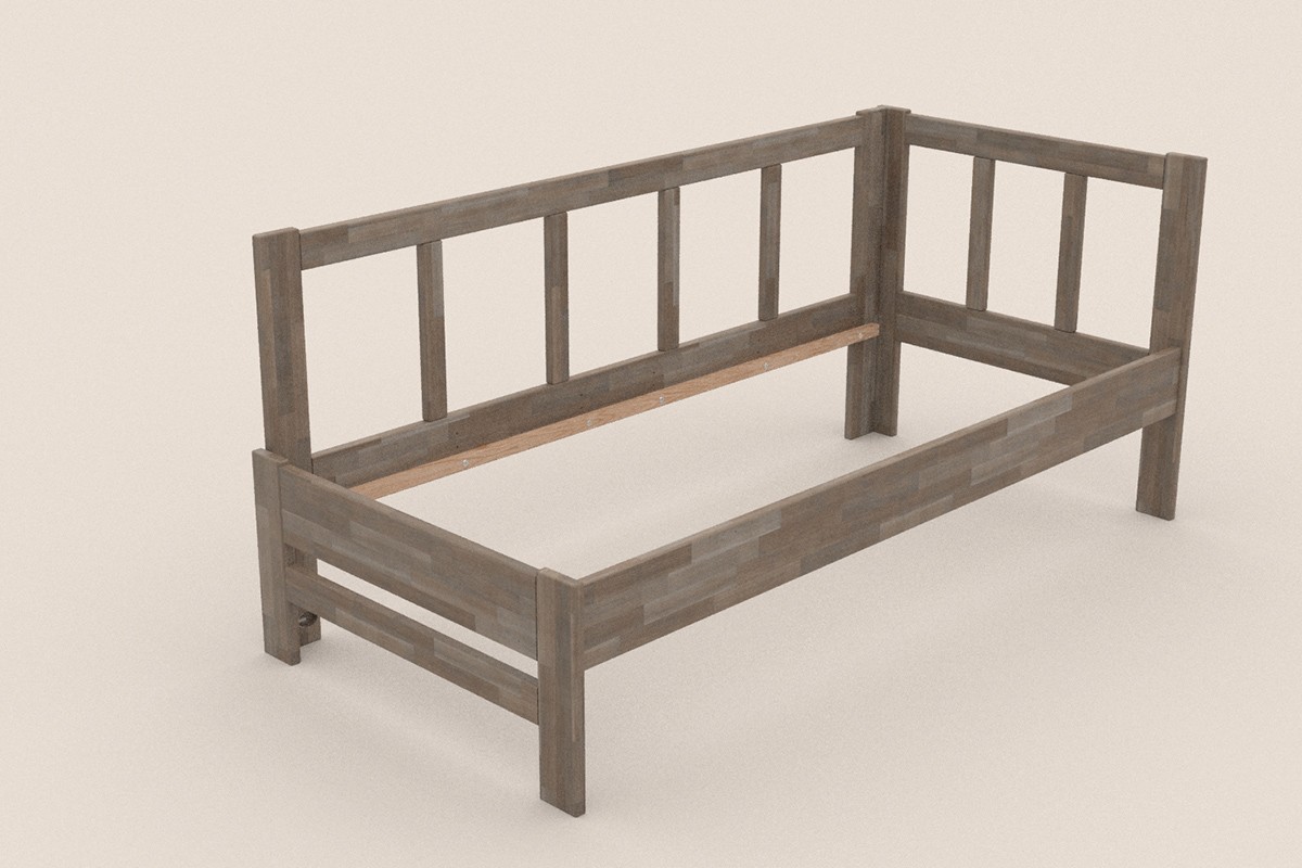 Jednolůžková rohová dřevěná postel Bety, levý roh, provedení BO105 šedý granit, 120x200 cm