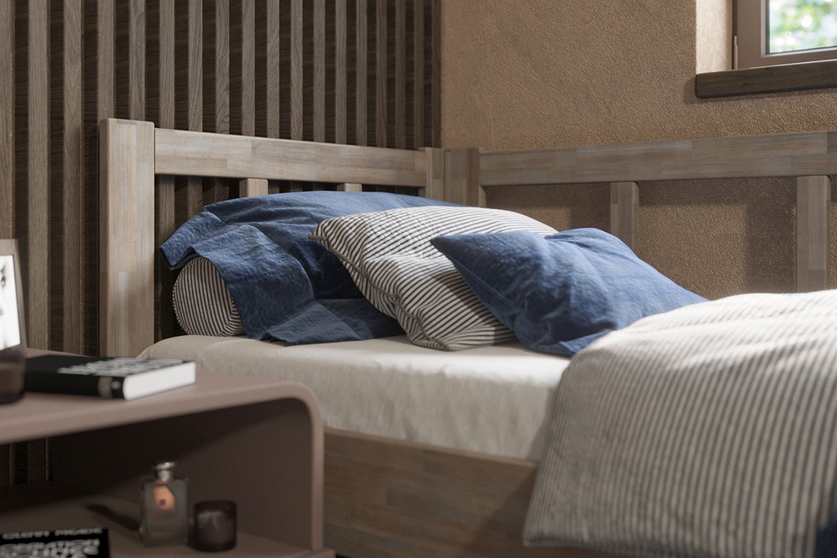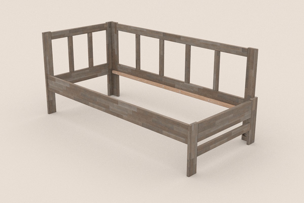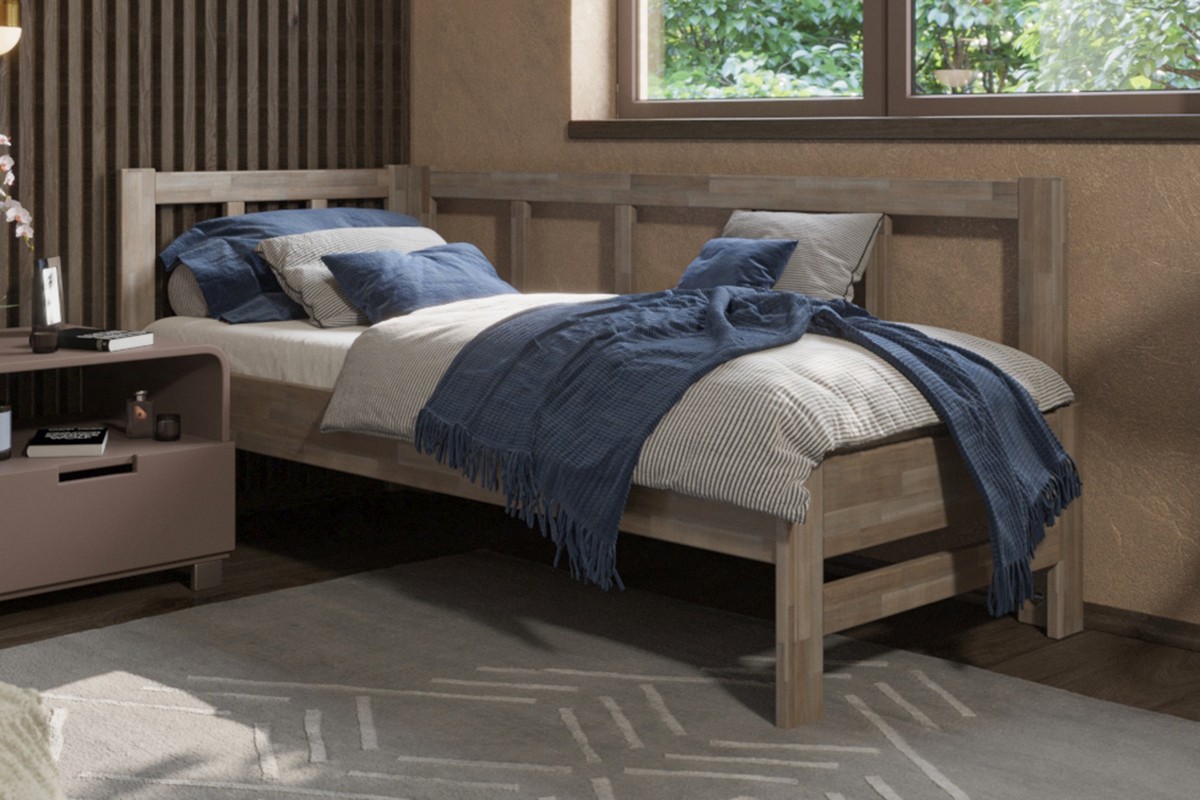 Jednolůžková rohová dřevěná postel Bety, pravý roh, provedení BO105 šedý granit, 90x200 cm