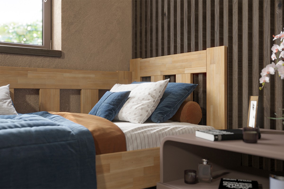 Rohová dřevěná postel Utena, levý roh, provedení BK1, 120x200 cm