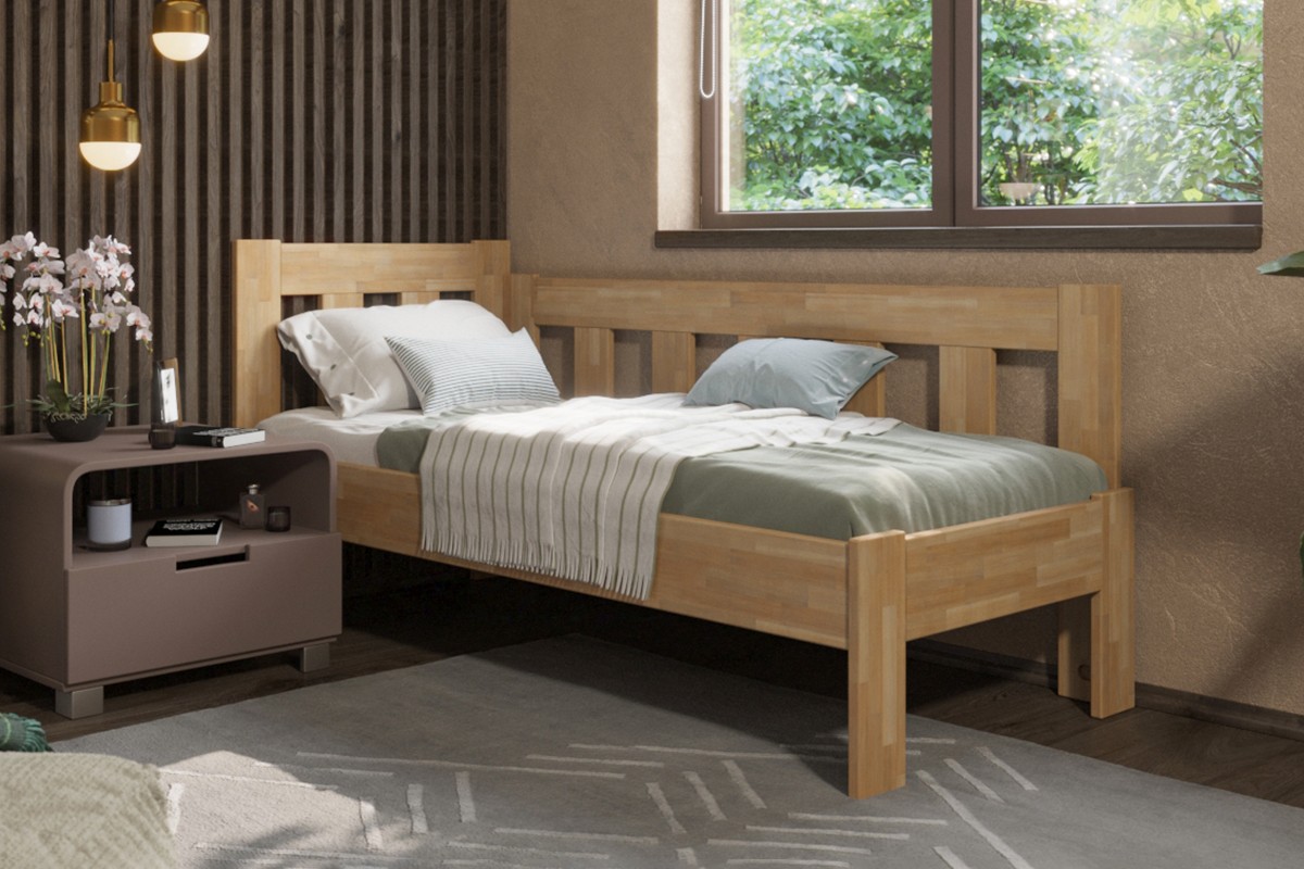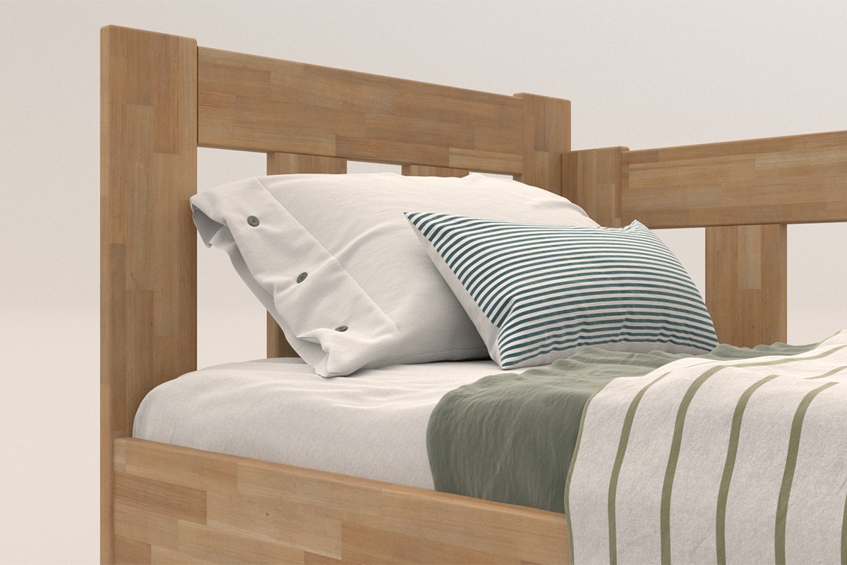 Rohová dřevěná postel Utena, pravý roh, provedení BK1, 120x200 cm