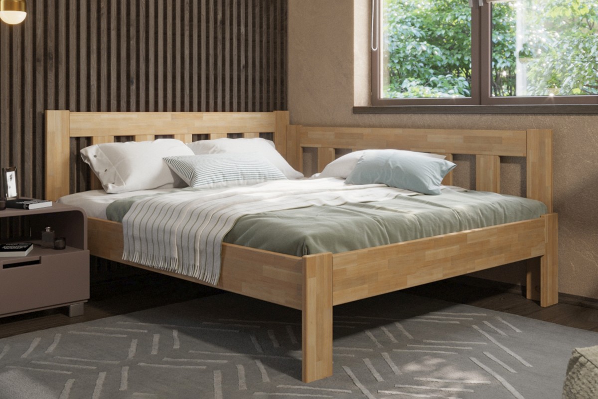 Rohová dřevěná postel Utena, pravý roh, provedení BK1, 160x200 cm