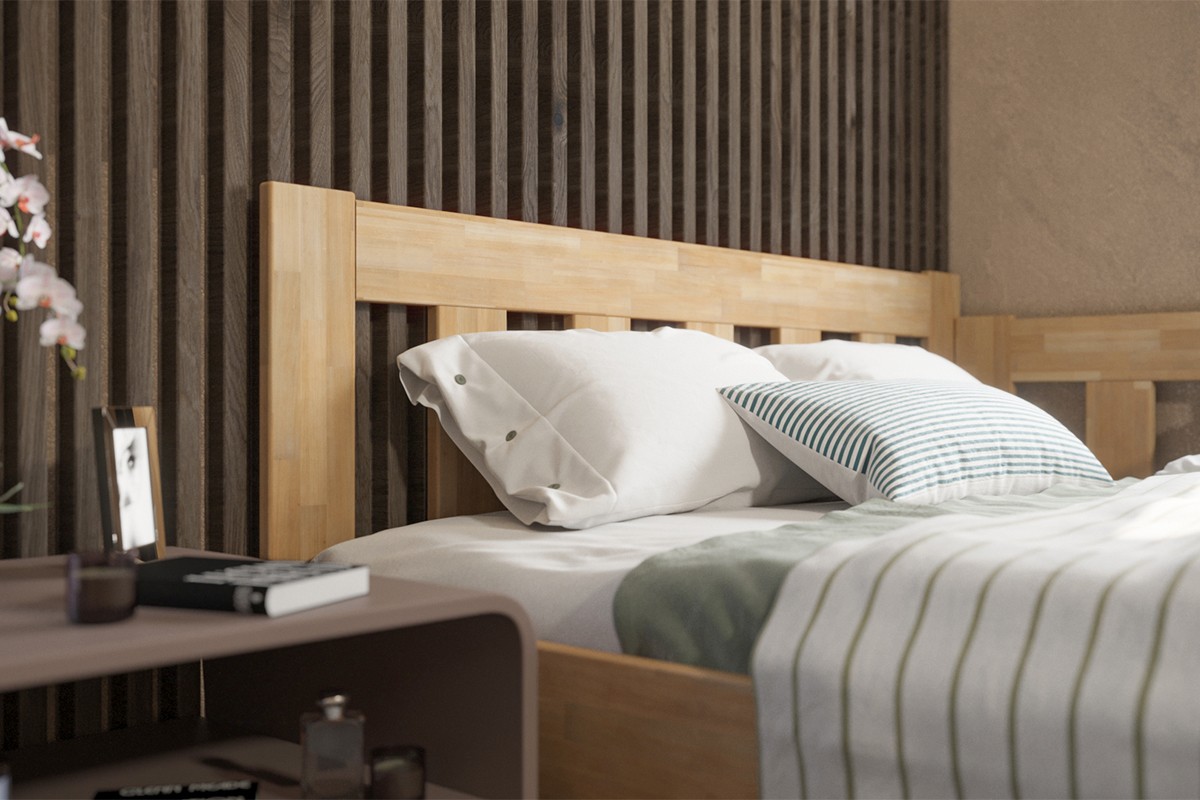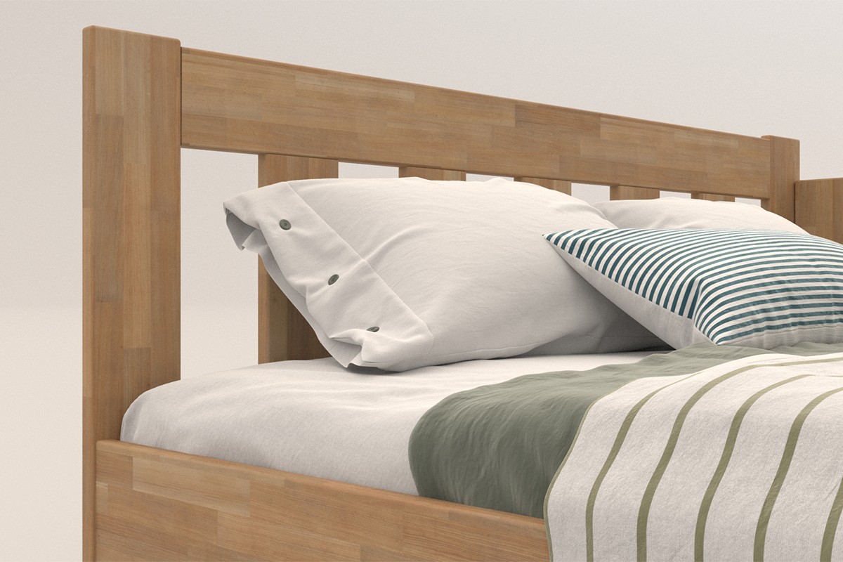 Rohová dřevěná postel Utena, pravý roh, provedení BK1, 180x200 cm