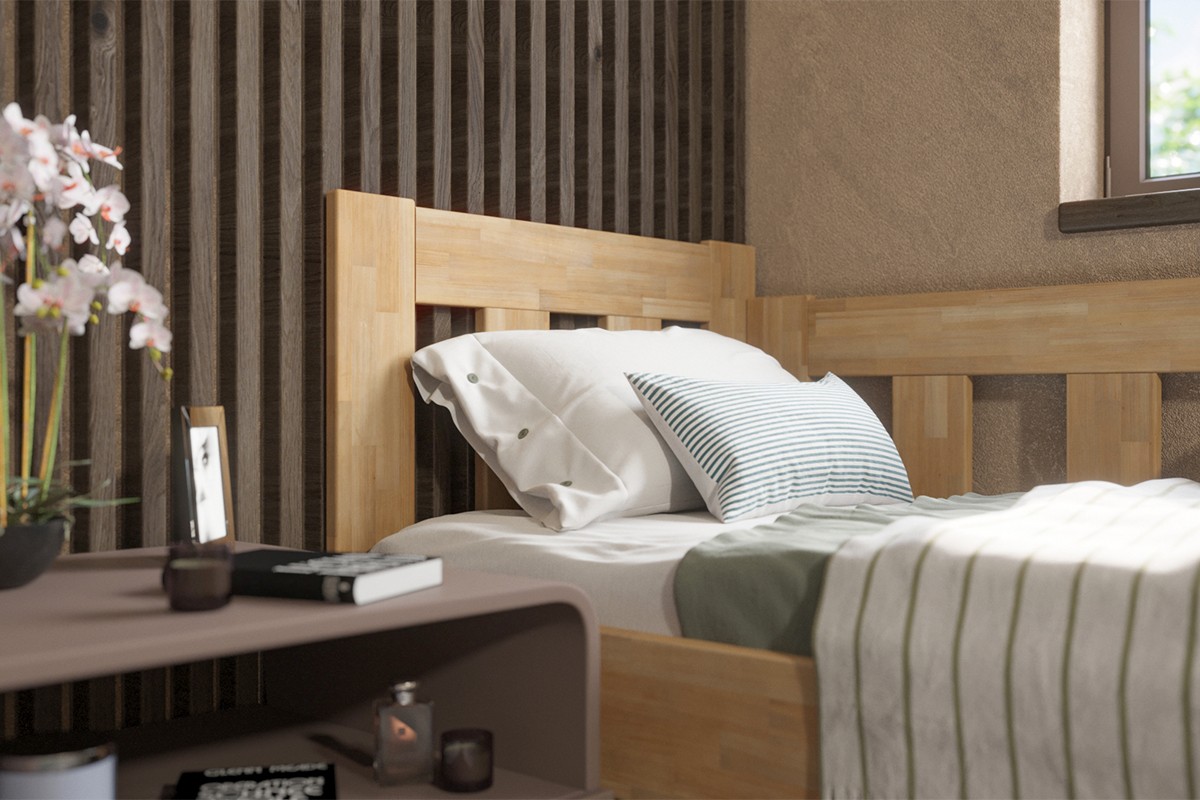 Rohová dřevěná postel Utena, pravý roh, provedení BK1, 90x200 cm