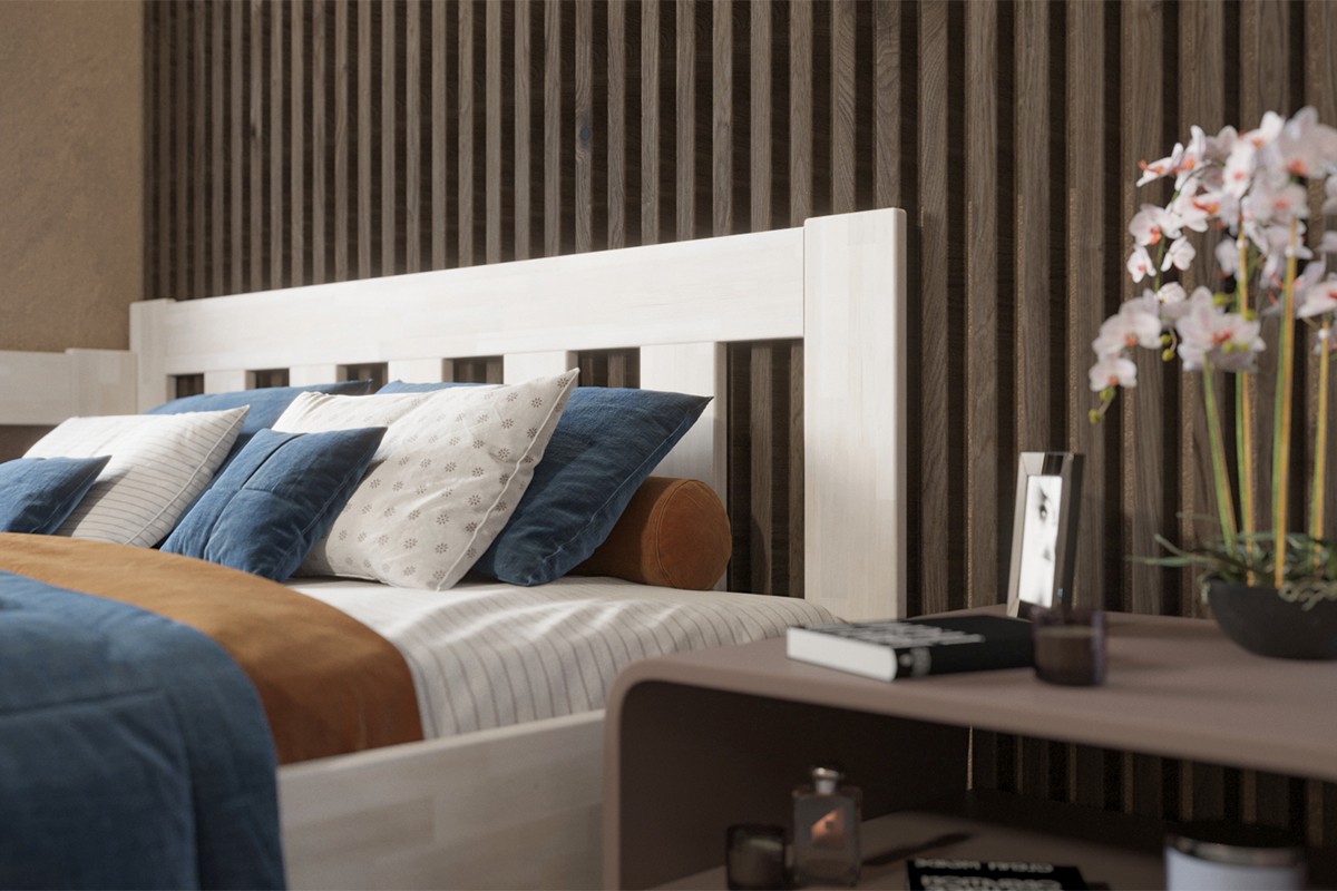 Rohová dřevěná postel Utena, levý roh, provedení BO102 bílá, 180x200 cm