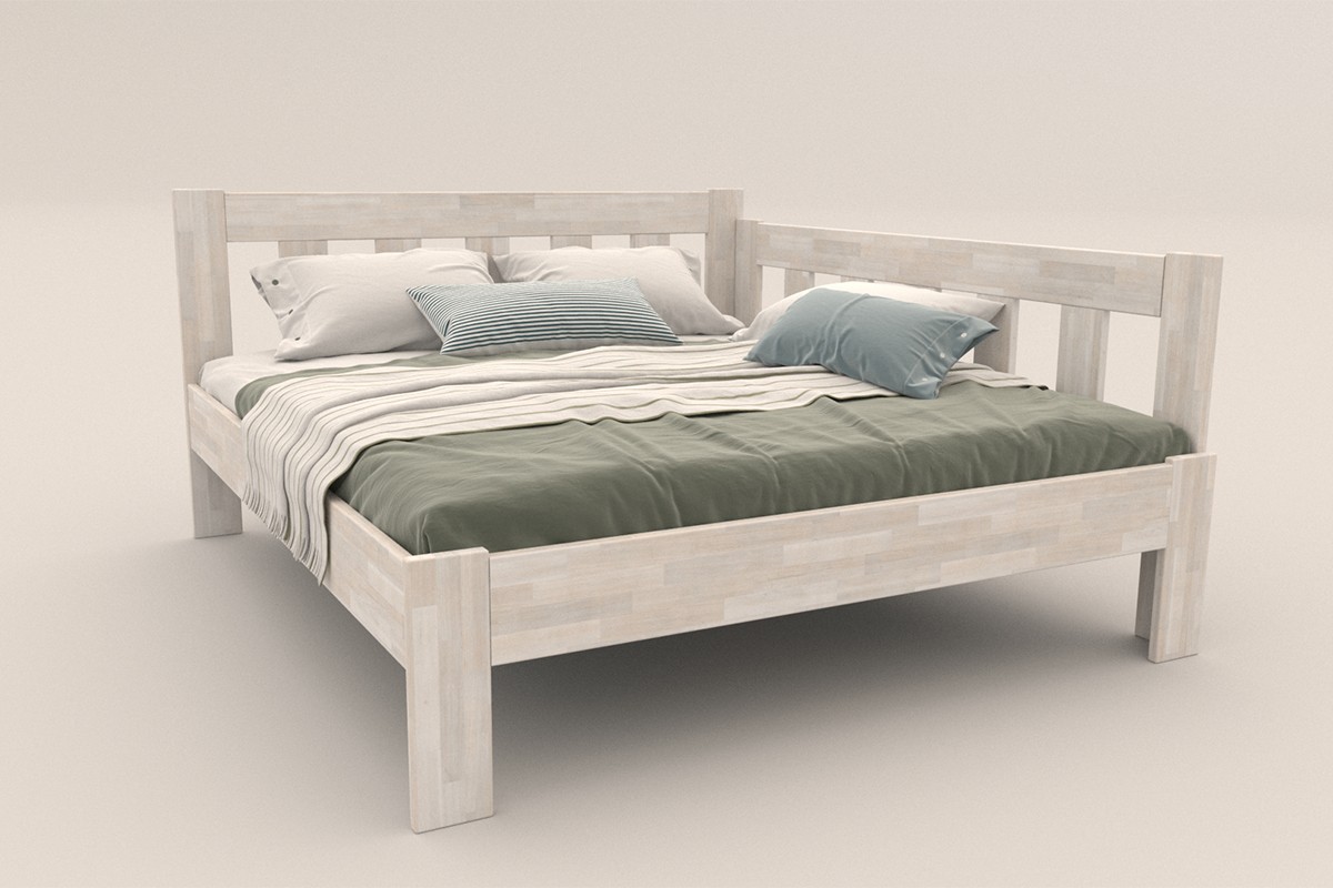 Rohová dřevěná postel Utena, pravý roh, provedení BO102 bílá, 180x200 cm
