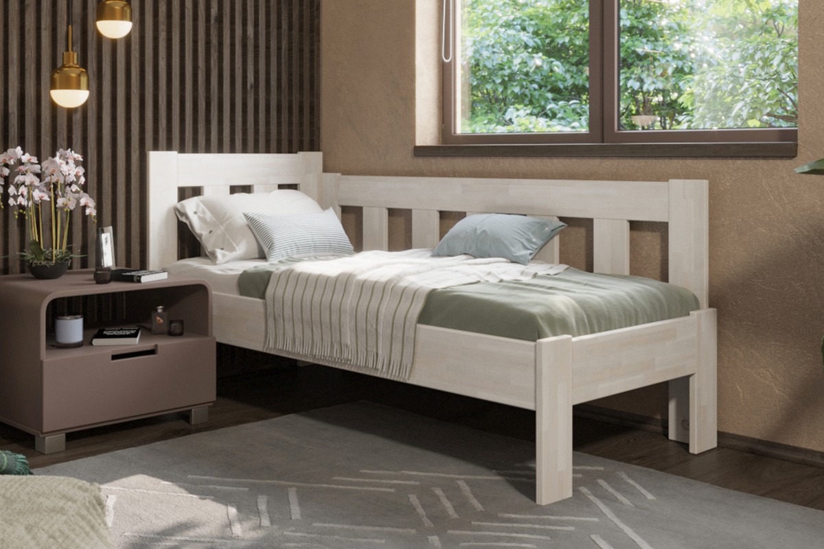 Rohová dřevěná postel Utena, pravý roh, provedení BO102 bílá, 90x200 cm