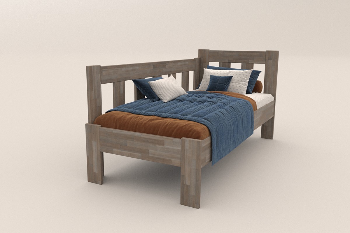 Rohová dřevěná postel Utena, levý roh, provedení BO105 šedý granit, 120x200 cm