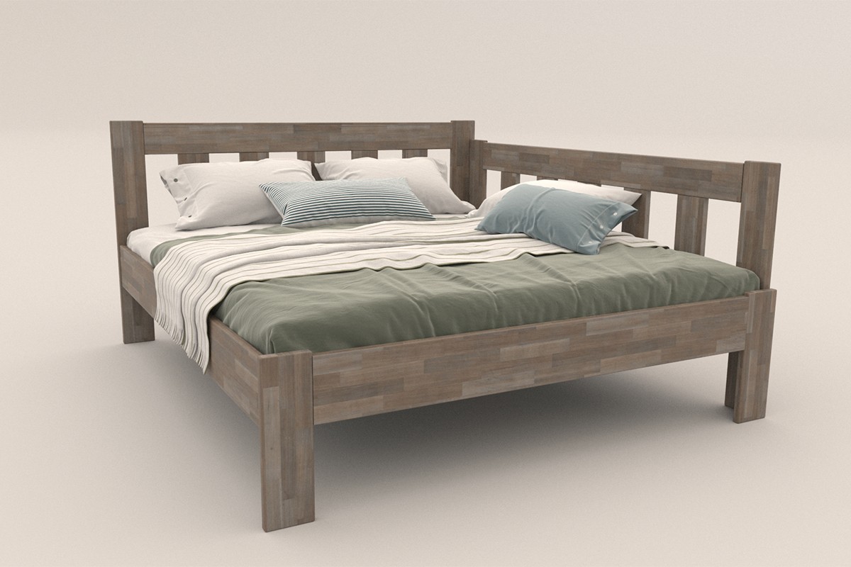 Rohová dřevěná postel Utena, pravý roh, provedení BO105 šedý granit, 160x200 cm