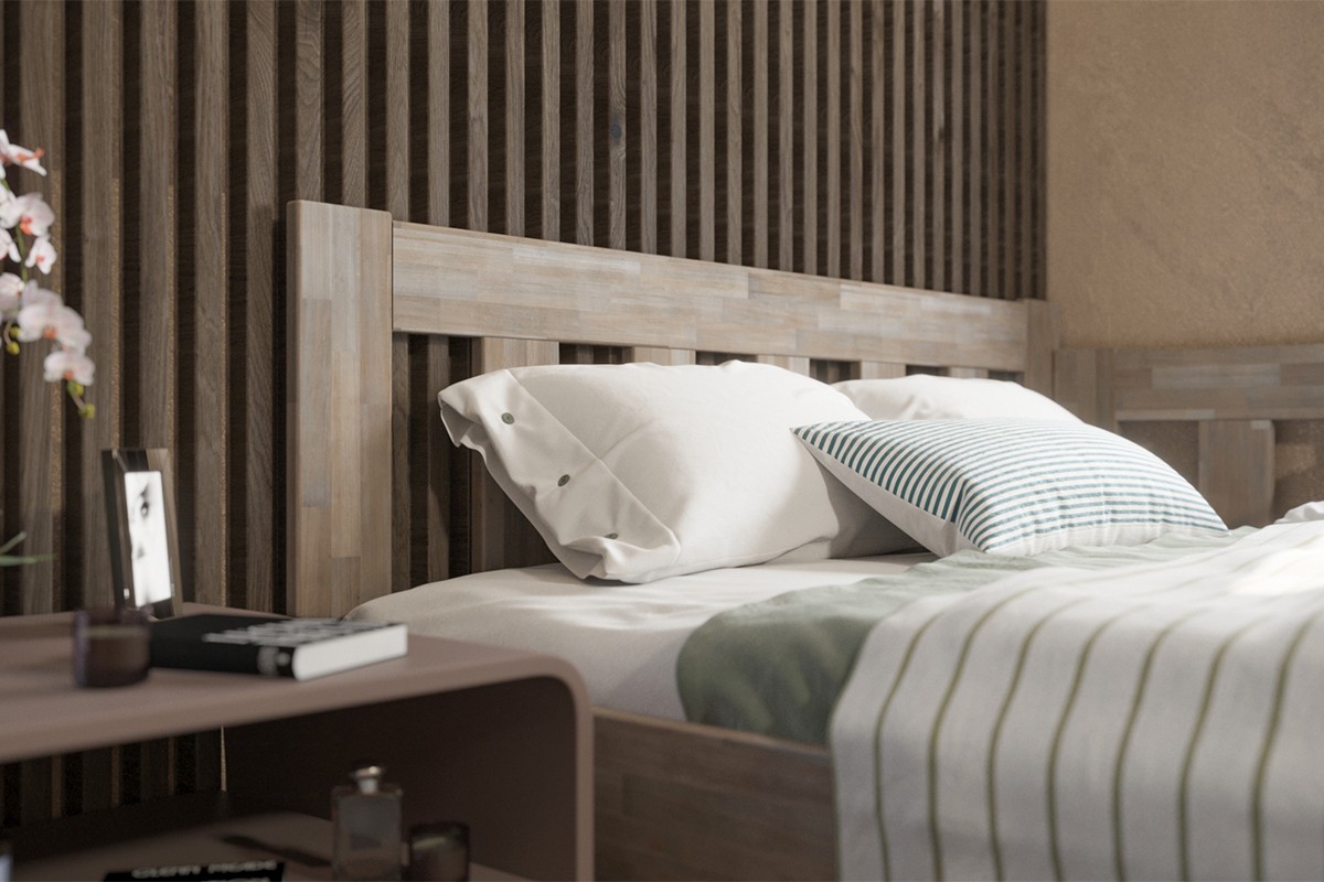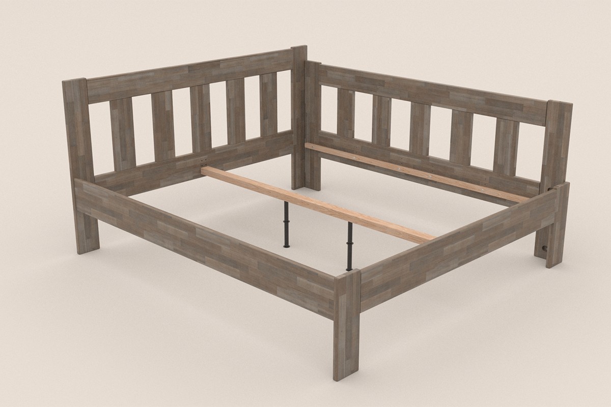 Rohová dřevěná postel Utena, pravý roh, provedení BO105 šedý granit, 180x200 cm