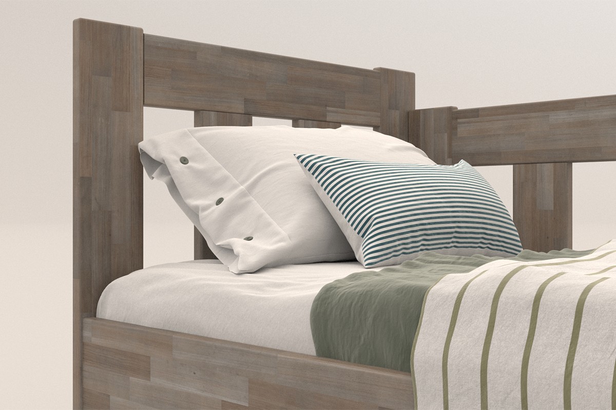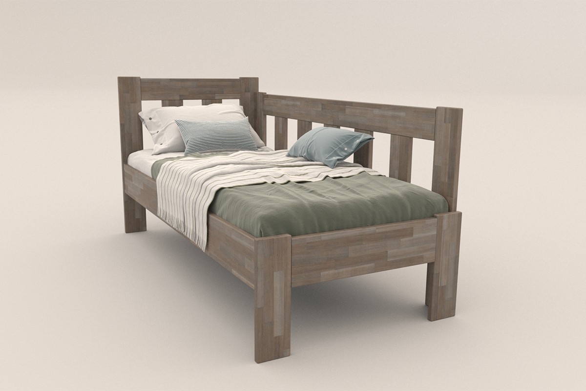 Rohová dřevěná postel Utena, pravý roh, provedení BO105 šedý granit, 80x200 cm