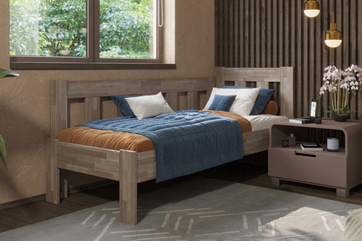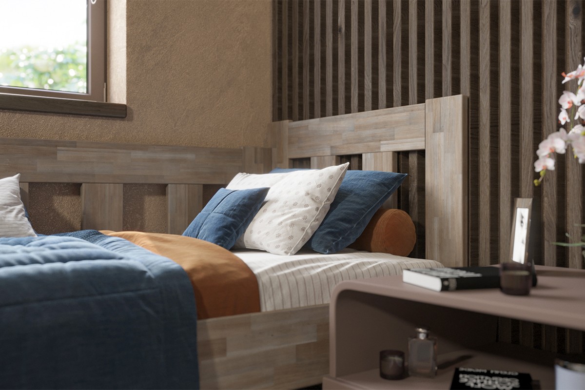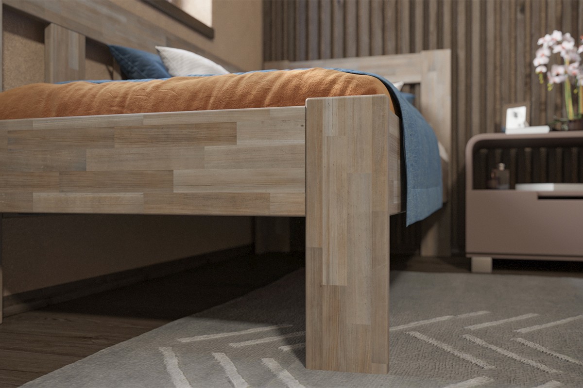 Rohová dřevěná postel Utena, levý roh, provedení BO105 šedý granit, 90x200 cm