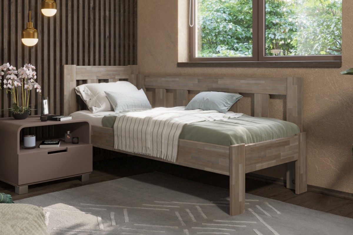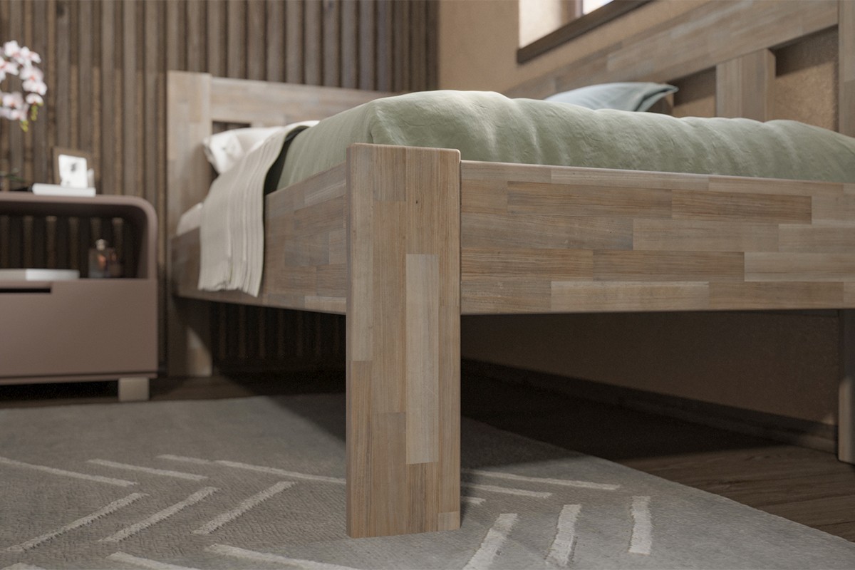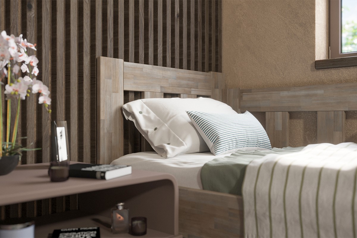 Rohová dřevěná postel Utena, pravý roh, provedení BO105 šedý granit, 90x200 cm